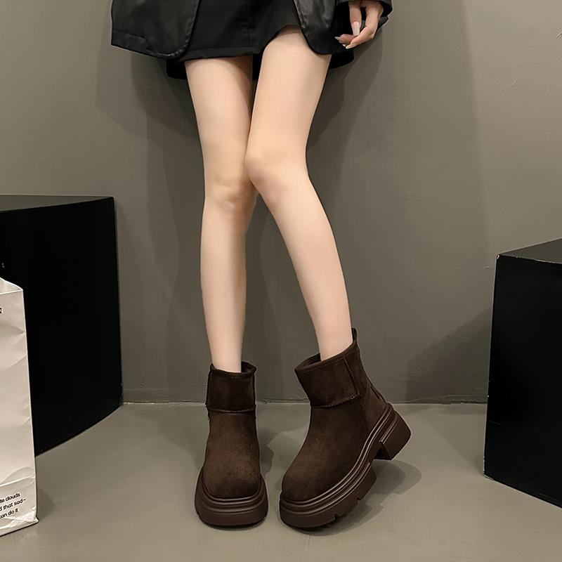 6cm厚底加绒短靴女2025冬季新款女靴子外穿保暖大棉鞋防滑雪地靴