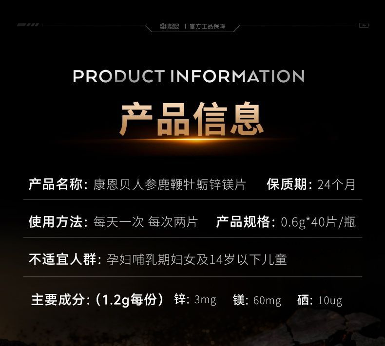 康恩贝牡蛎锌镁片人参鹿鞭牡蛎肽膳食品 男性保健搭番茄红素