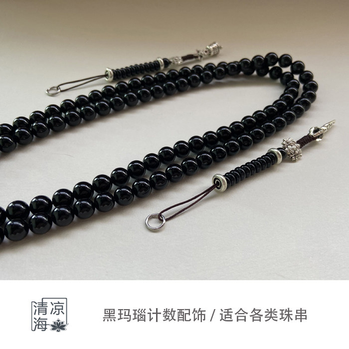 清凉海黑玛瑙记数器小叶紫檀手链手串记子藏银配饰配件