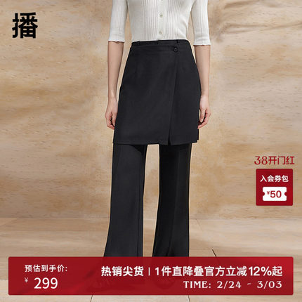 播摩登中性风微喇休闲裤女商场同款24夏高腰显瘦裙裤BDR2KD0798