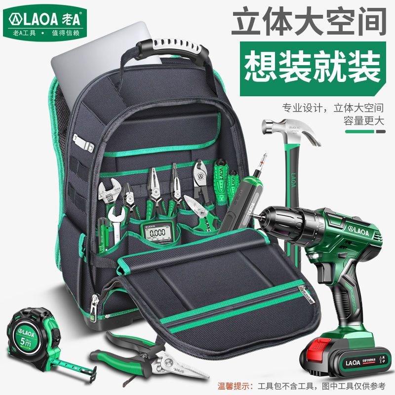老A 工具背包男双肩工具包多功能维修帆布耐用便携安装拉杆工具包