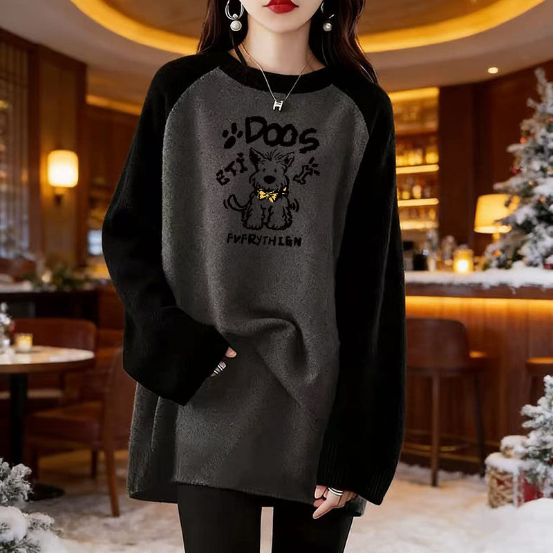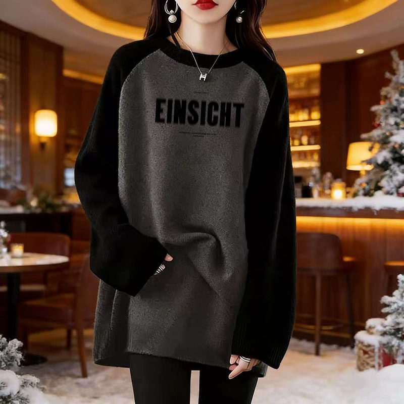 休闲百搭圆领长袖女纯棉T恤秋冬卫衣内搭德绒打底衫中长款上衣ins