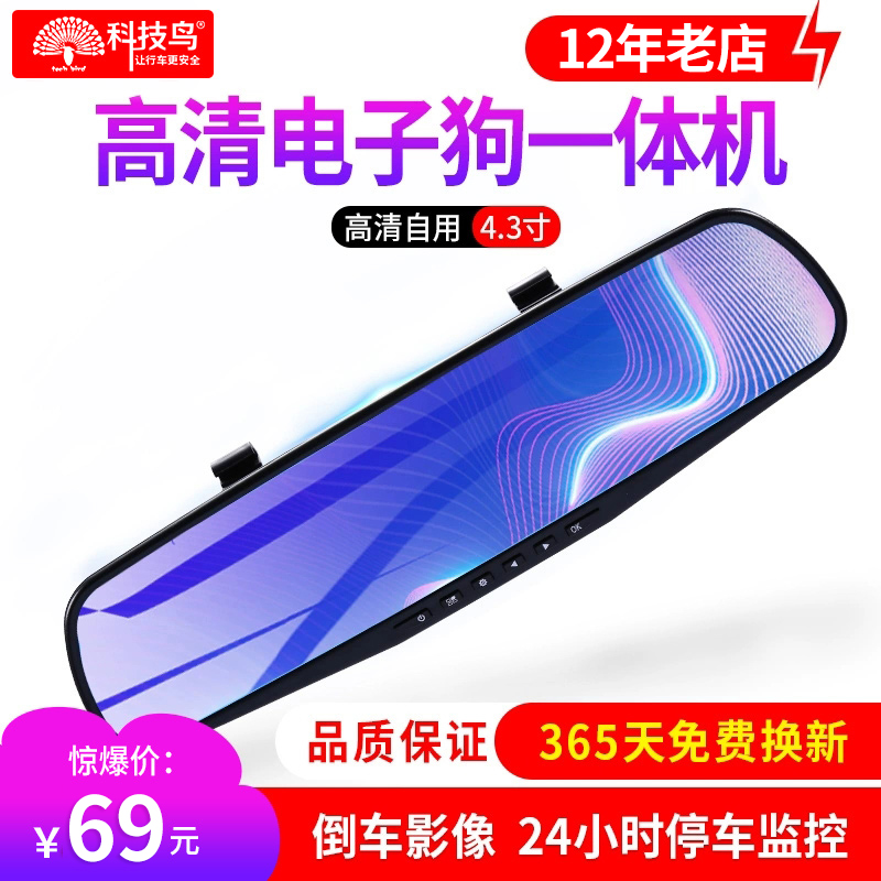 高清夜视后视镜汽车载行车记录仪双D录倒车影像 电子狗一体机新款