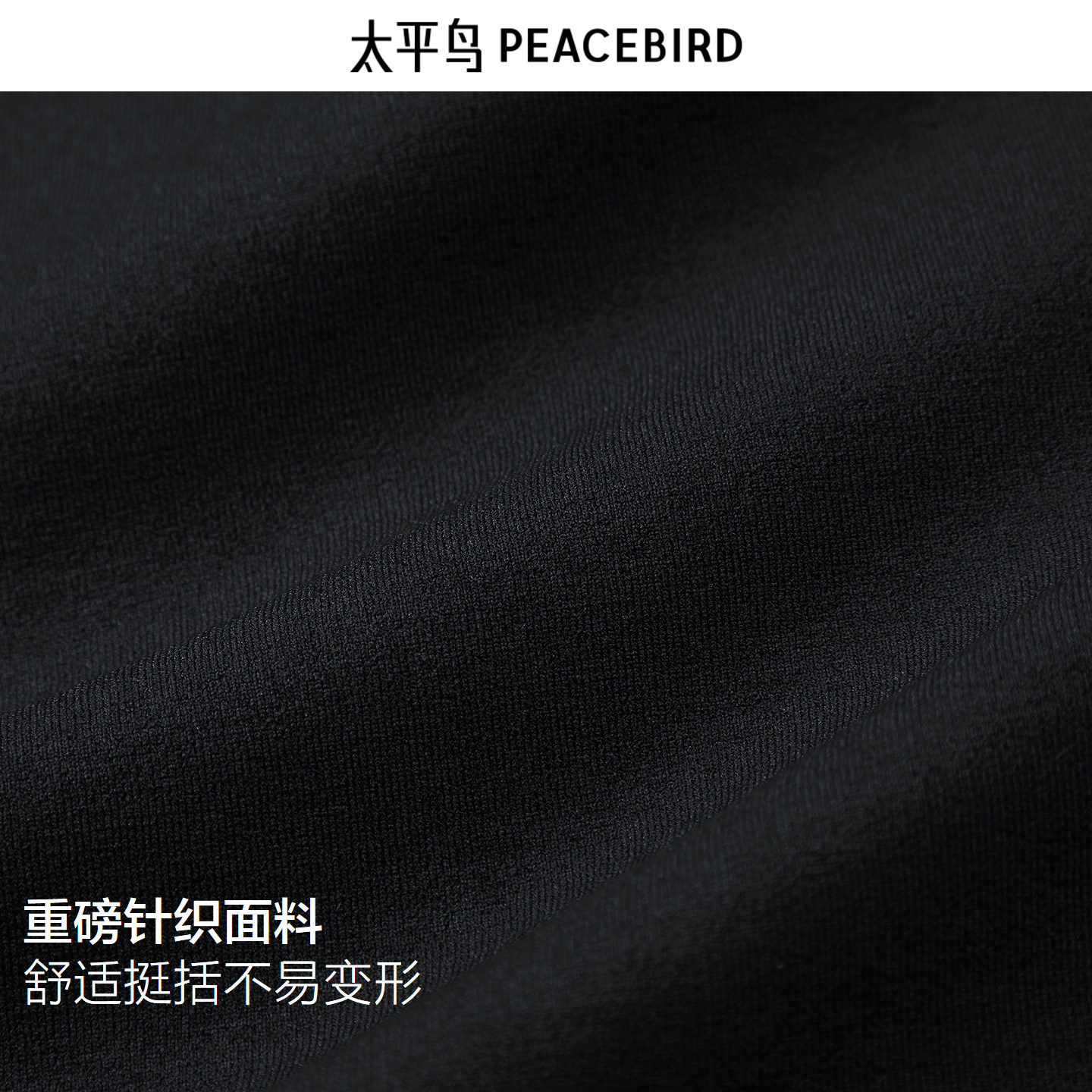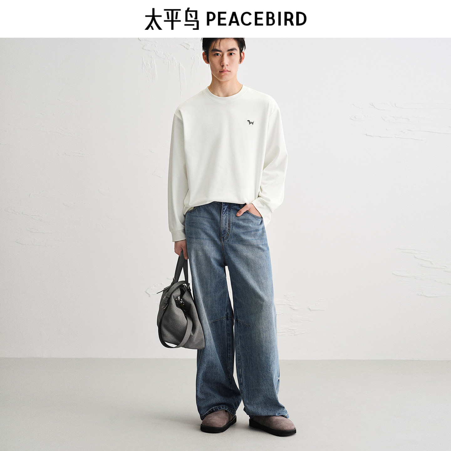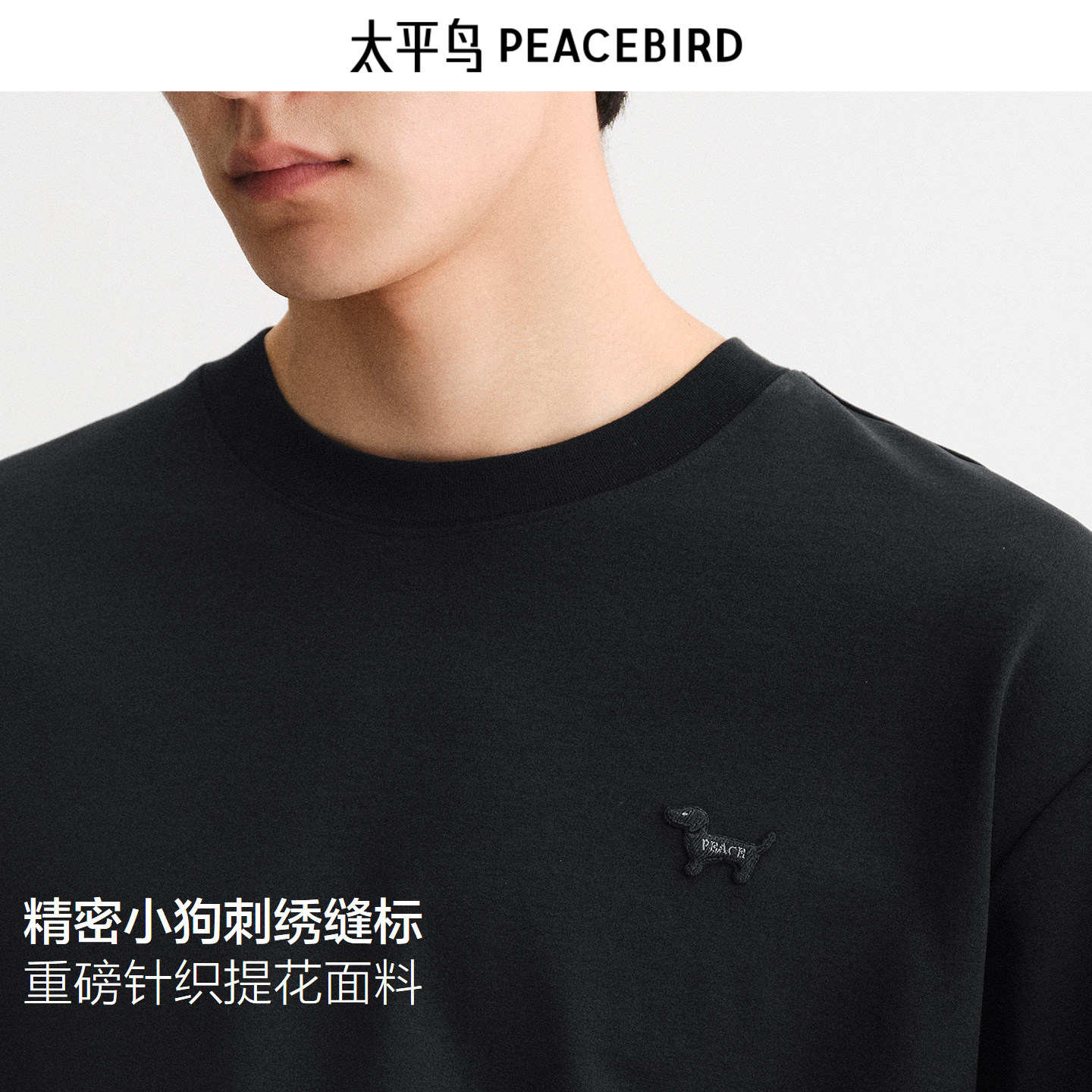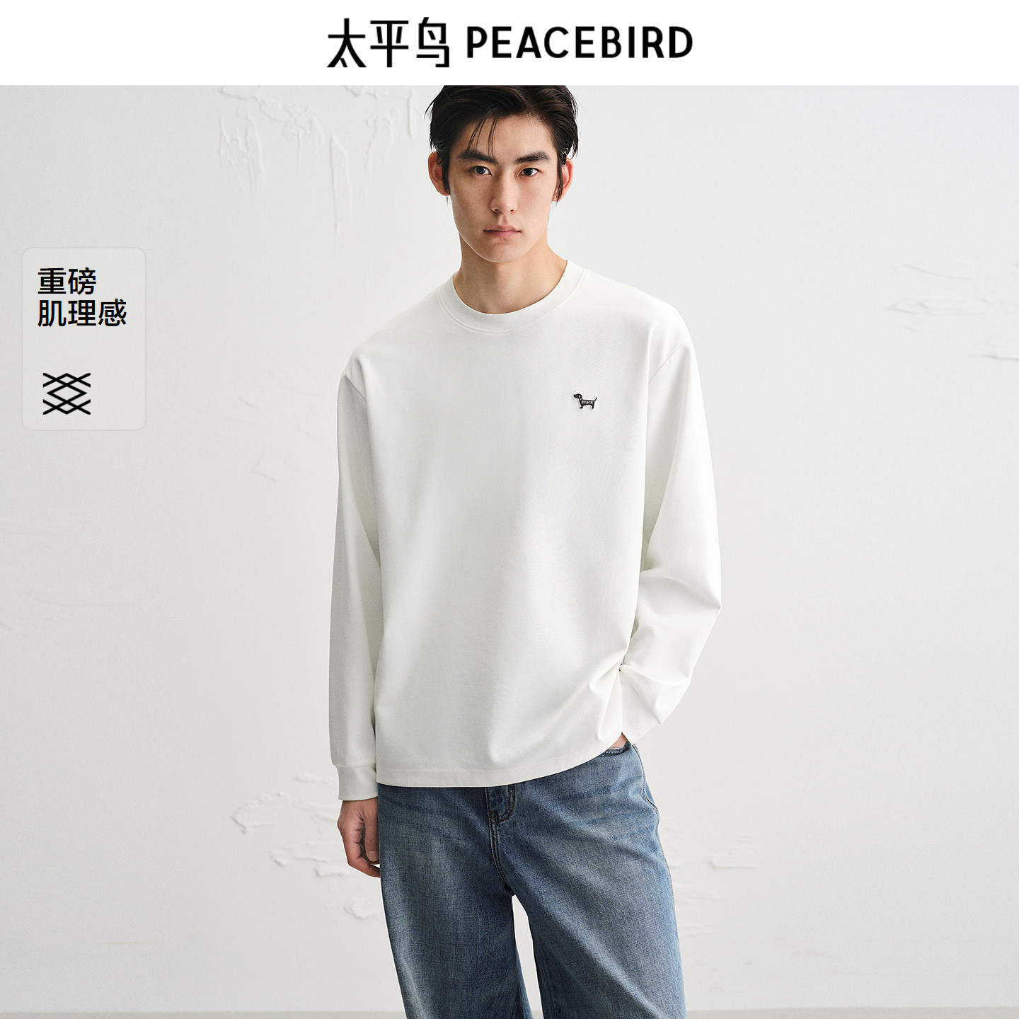 太平鸟男装T恤25秋季纯色重磅小狗刺绣长袖宽松肌理打底衫潮