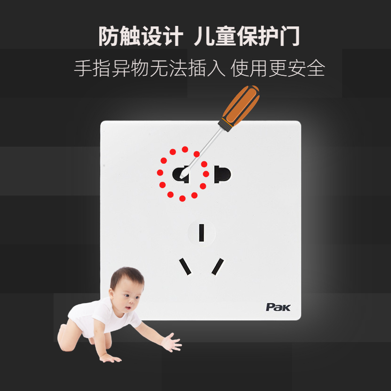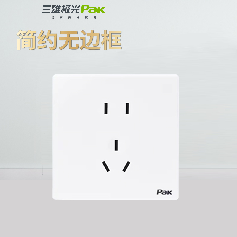三雄极光开关插座面板3孔家用16a墙壁白色明装一开五孔插座带开关