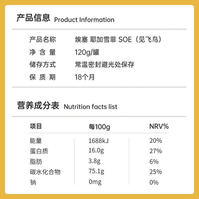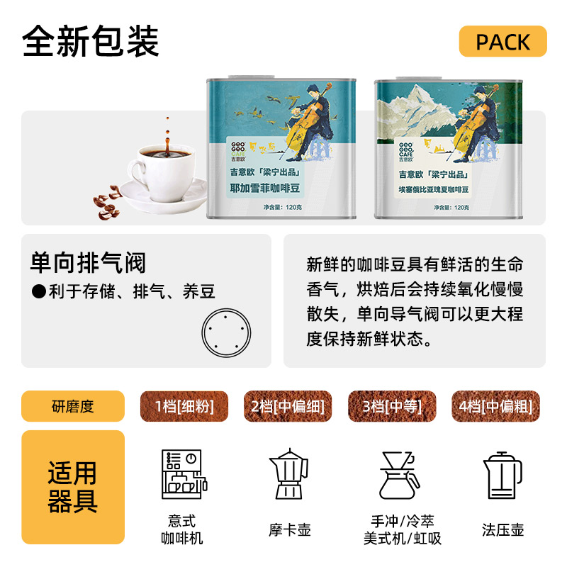 吉意欧埃塞俄比亚耶加雪菲精品手冲咖啡豆瑰夏浅烘SOE可磨粉120g