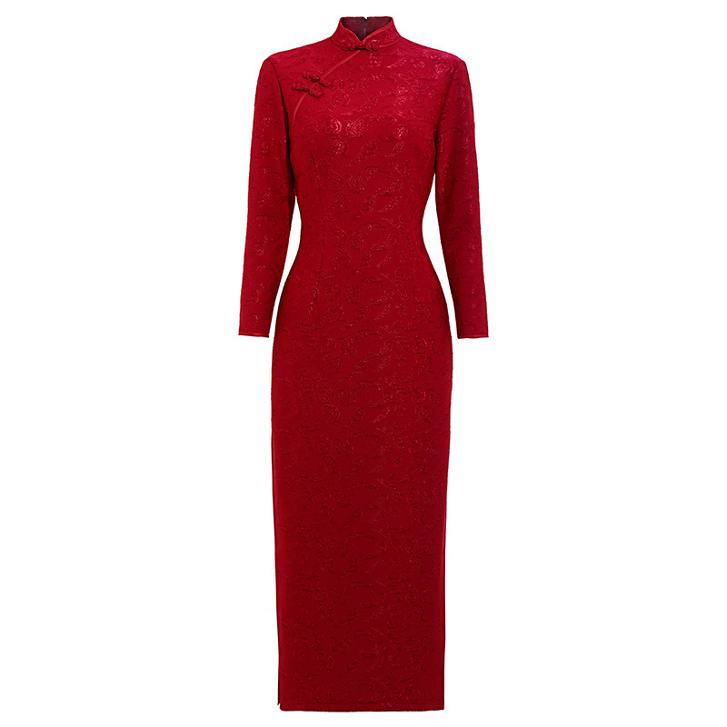 老上海改良版旗袍女秋冬季加绒加厚复古连衣裙妈妈中国风长款礼服