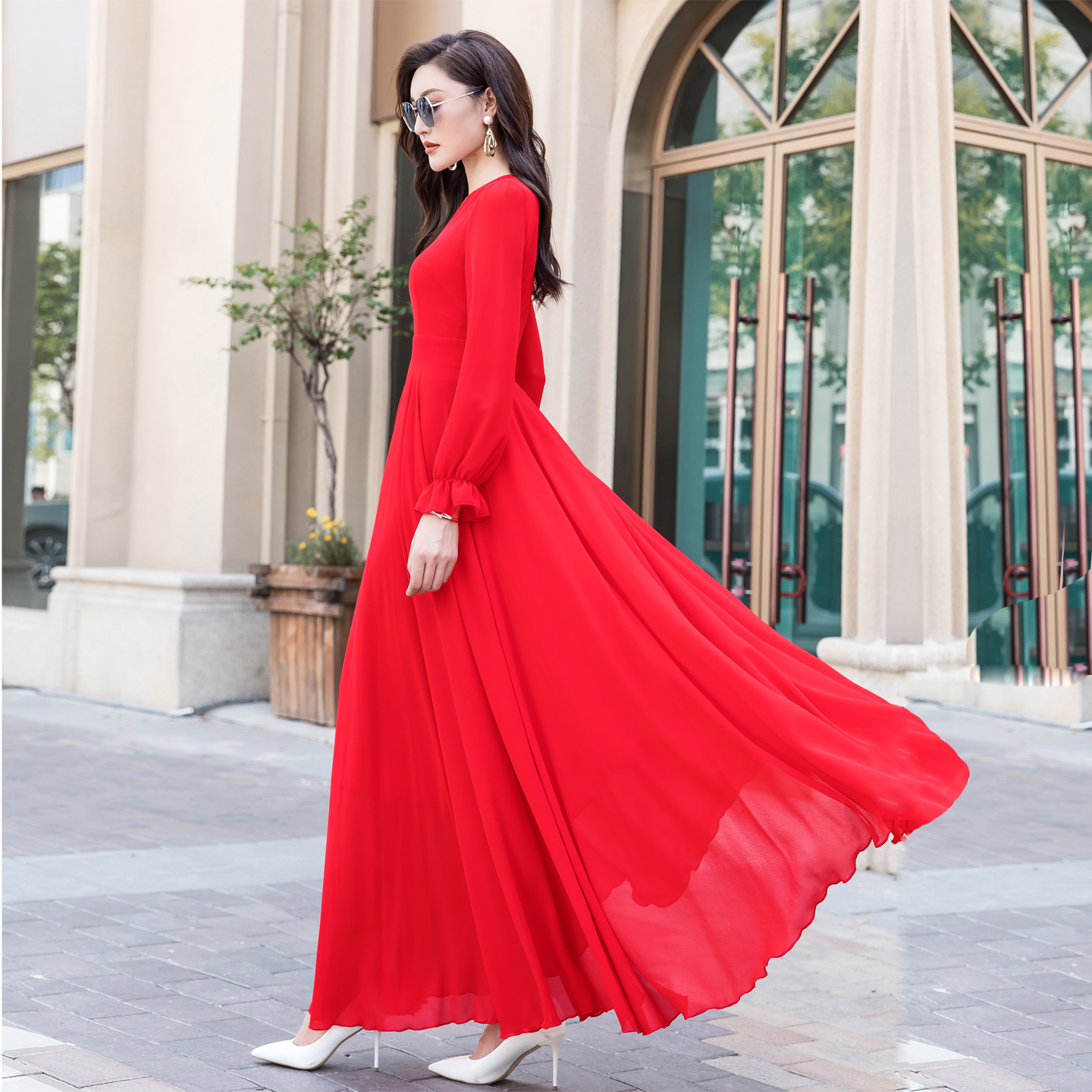 连衣裙2025新款今年流行爆款名媛气质旅游拍照显瘦雪纺大摆长裙