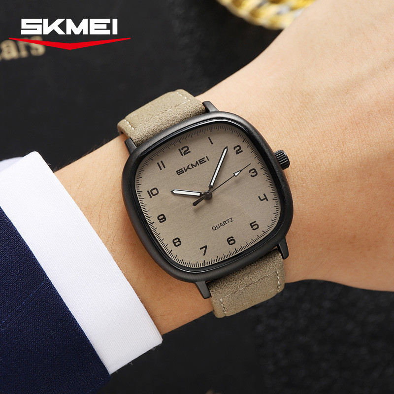 时刻美时尚简约石英表运动复古皮带腕表潮流个性学生手表男士数字