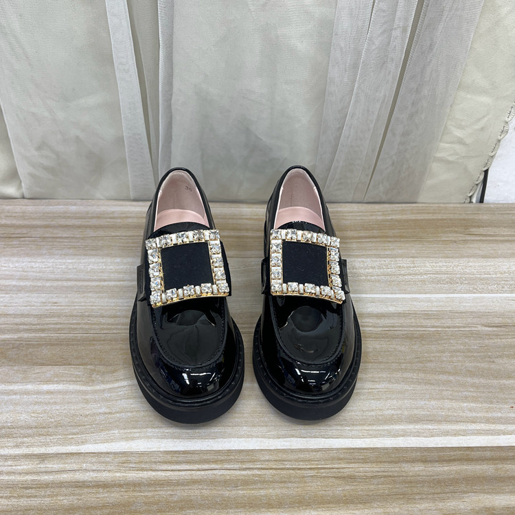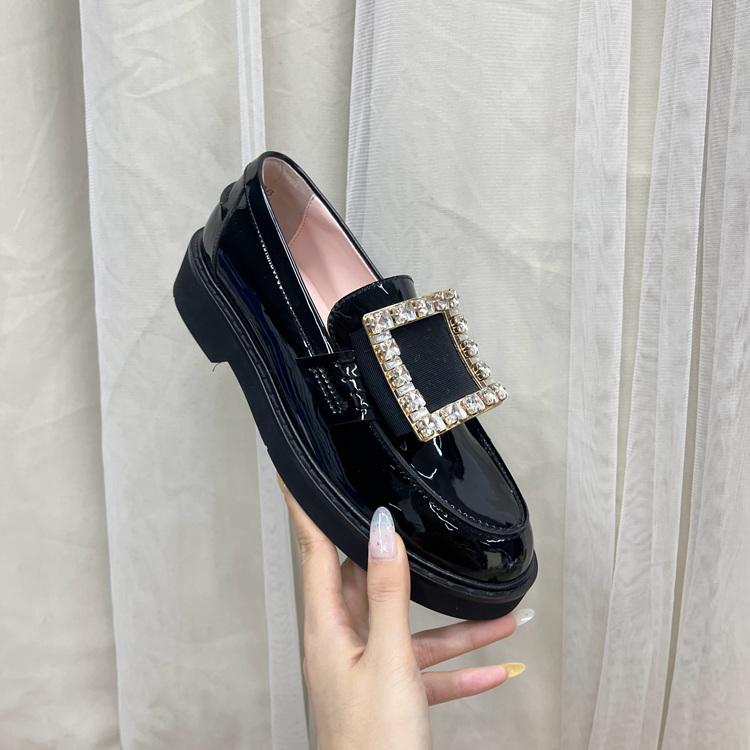 外贸原单女鞋圆头纯色厚底粗跟带钻时尚新款一脚蹬单鞋百搭乐福鞋
