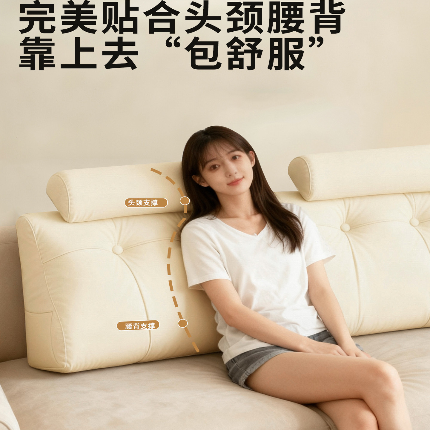 奶油风床头软包靠垫无床头靠枕