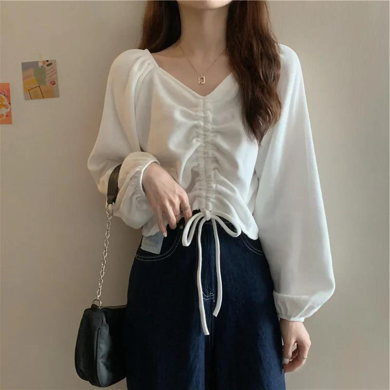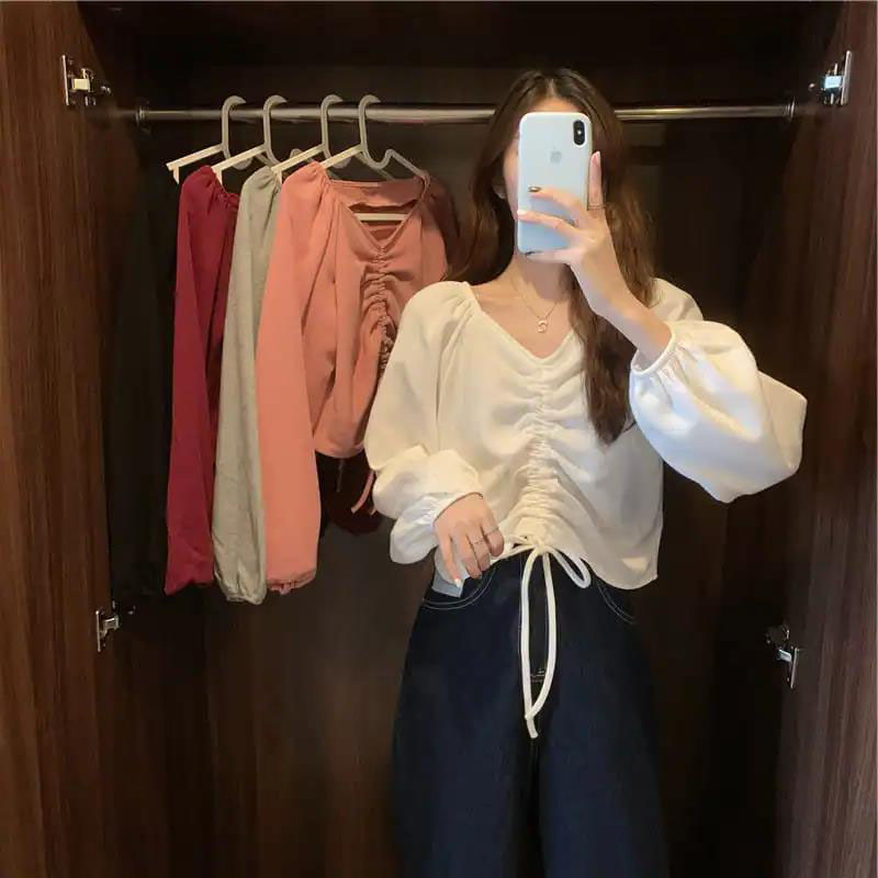 薄大码女装棉女韩版长袖抽皱