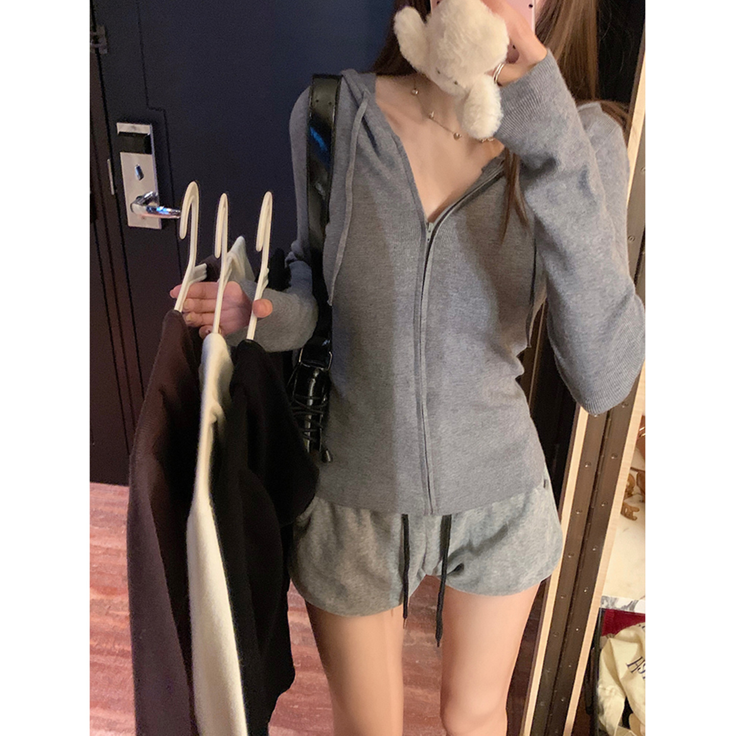 连帽针织开衫毛衣外套女秋冬2025新款内搭修身小个子短款收腰上衣