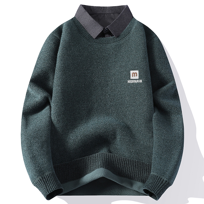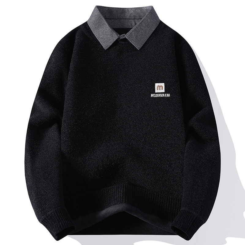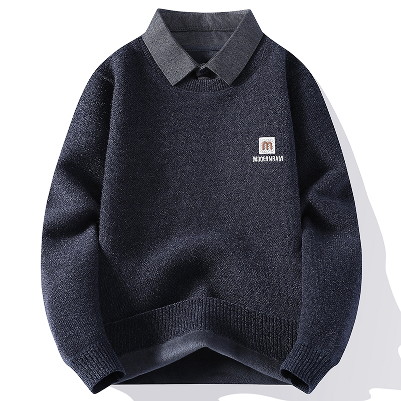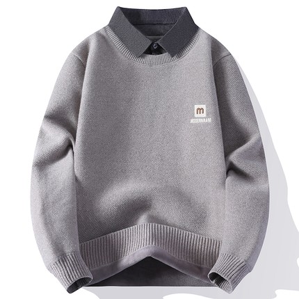 假两件内衣男士秋冬季新款衬衫领打底衫男款加绒加厚保暖内搭衣服