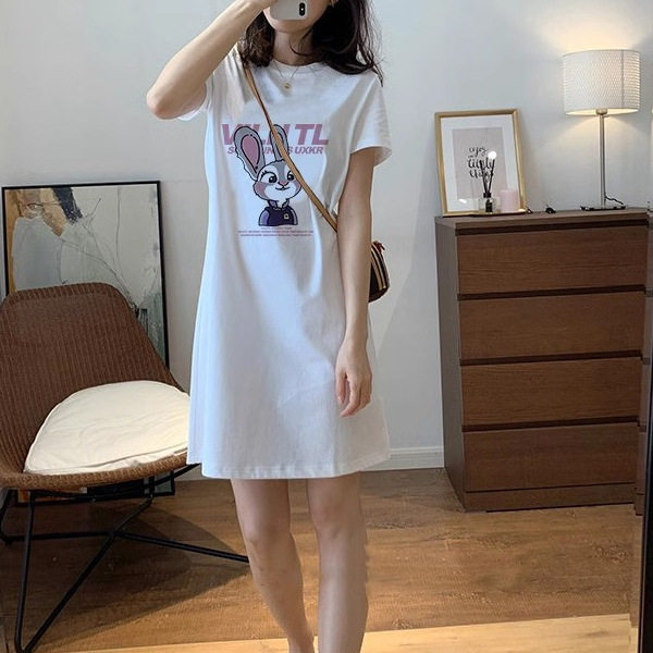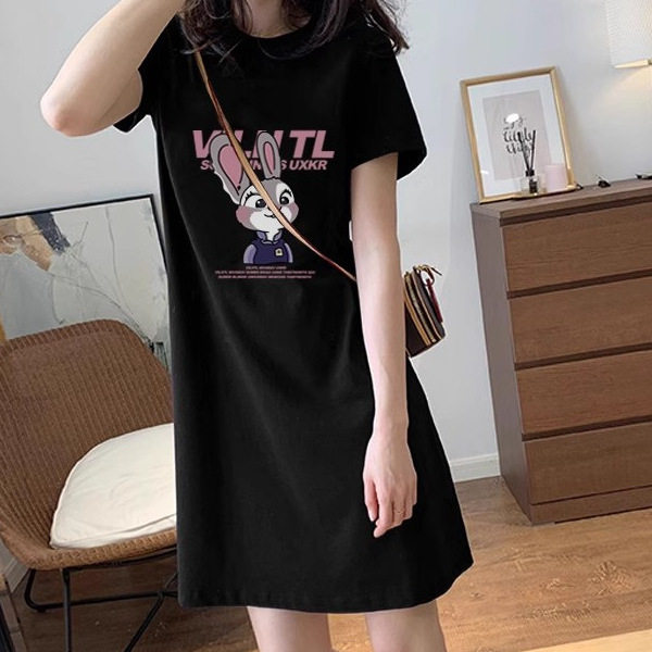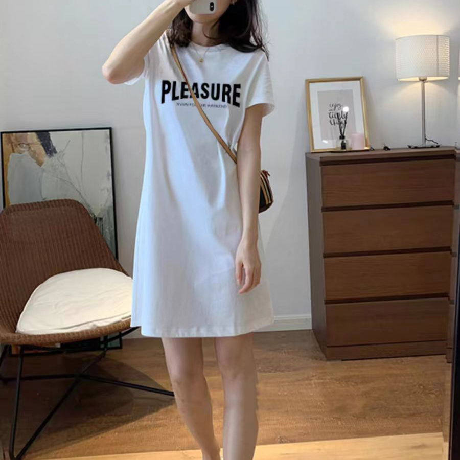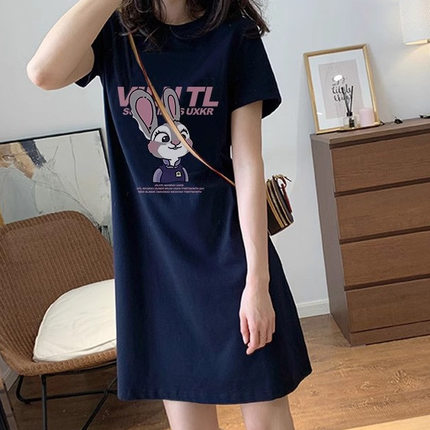 纯棉短袖t恤裙女中长款连衣裙子