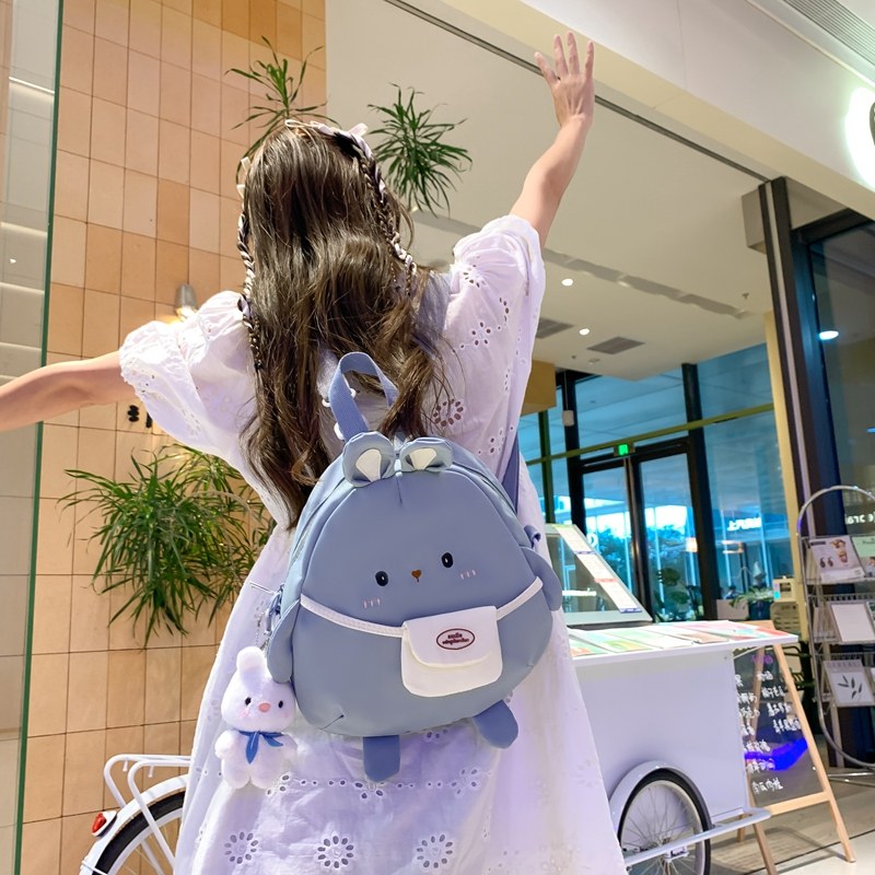 可爱卡通兔子包包女生迷你双肩包女大学生搞怪帆布小背包软妹书包