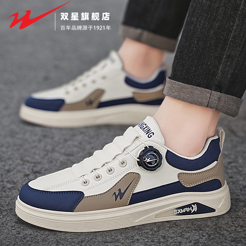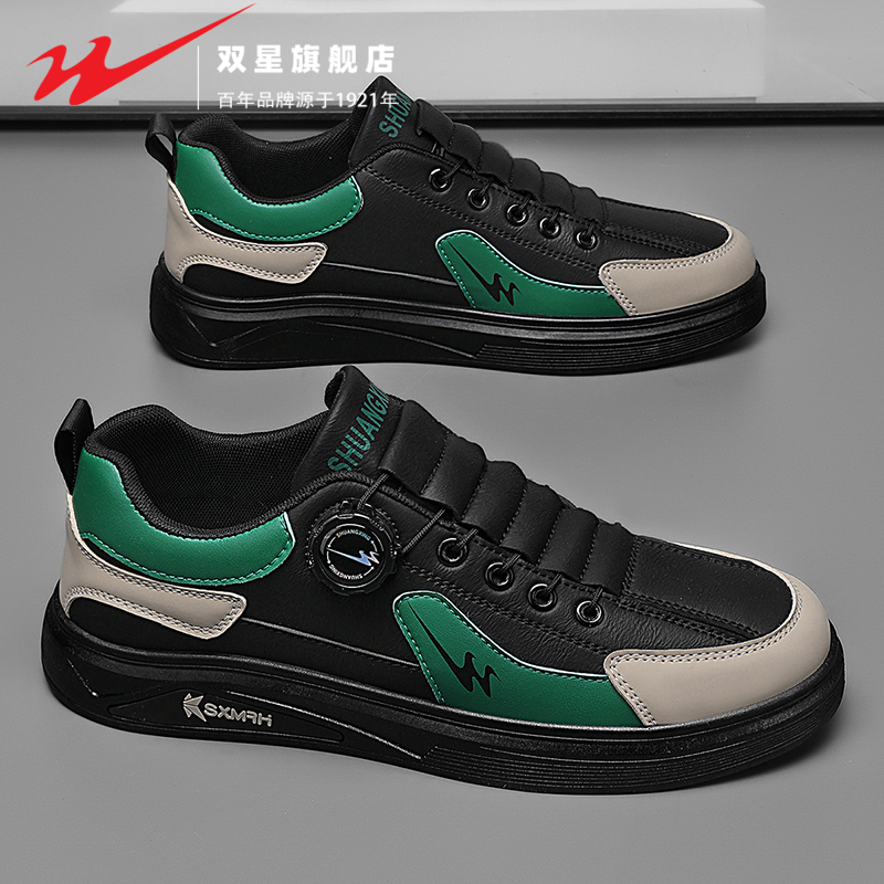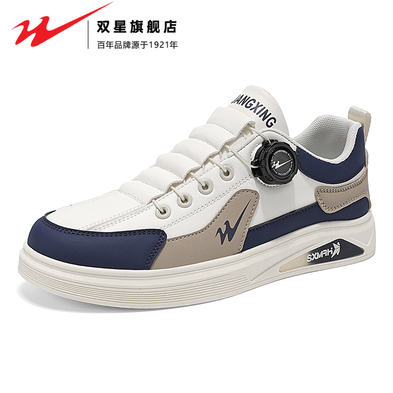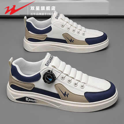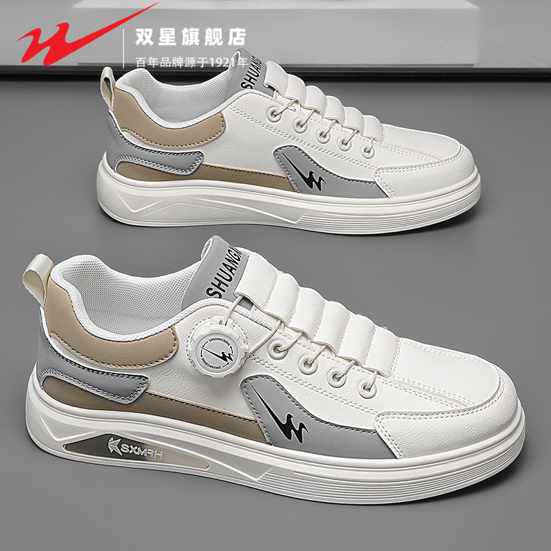 双星旋转纽扣男鞋2025新款秋季男士运动休闲防滑软底工作小白板鞋
