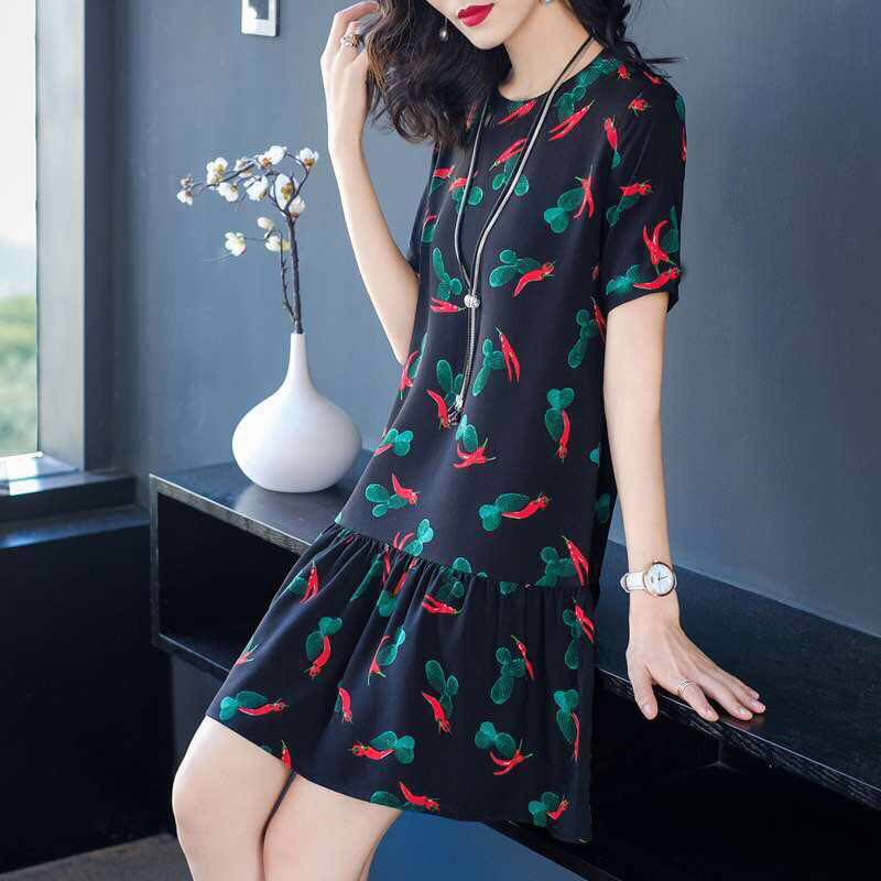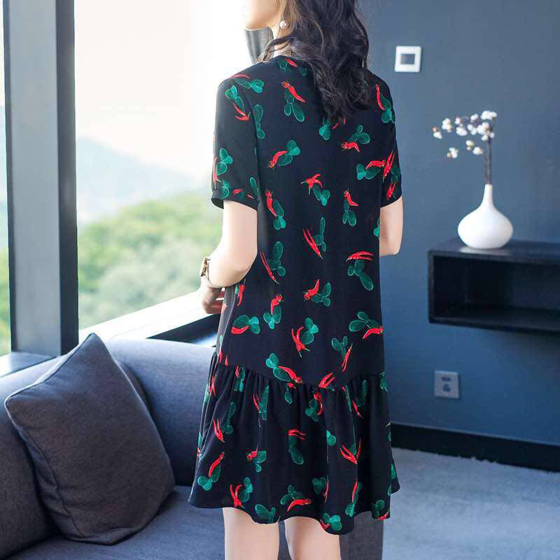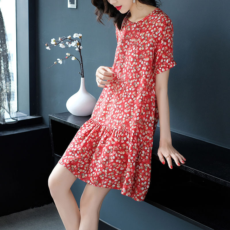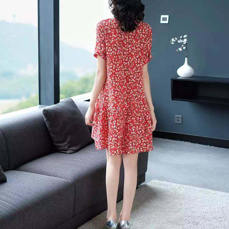 中年妈妈碎花裙夏季2025新款大码女装宽松显瘦减龄a字短袖连衣裙
