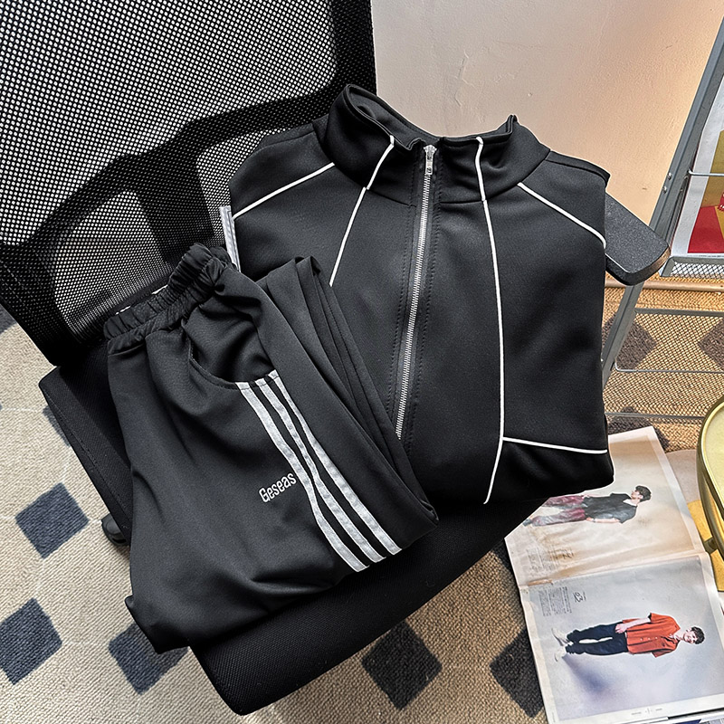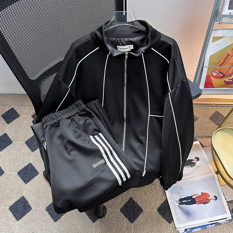 立领冲锋夹克撞色宽松立领拉链开衫男女运动春秋机能工装裤两件套