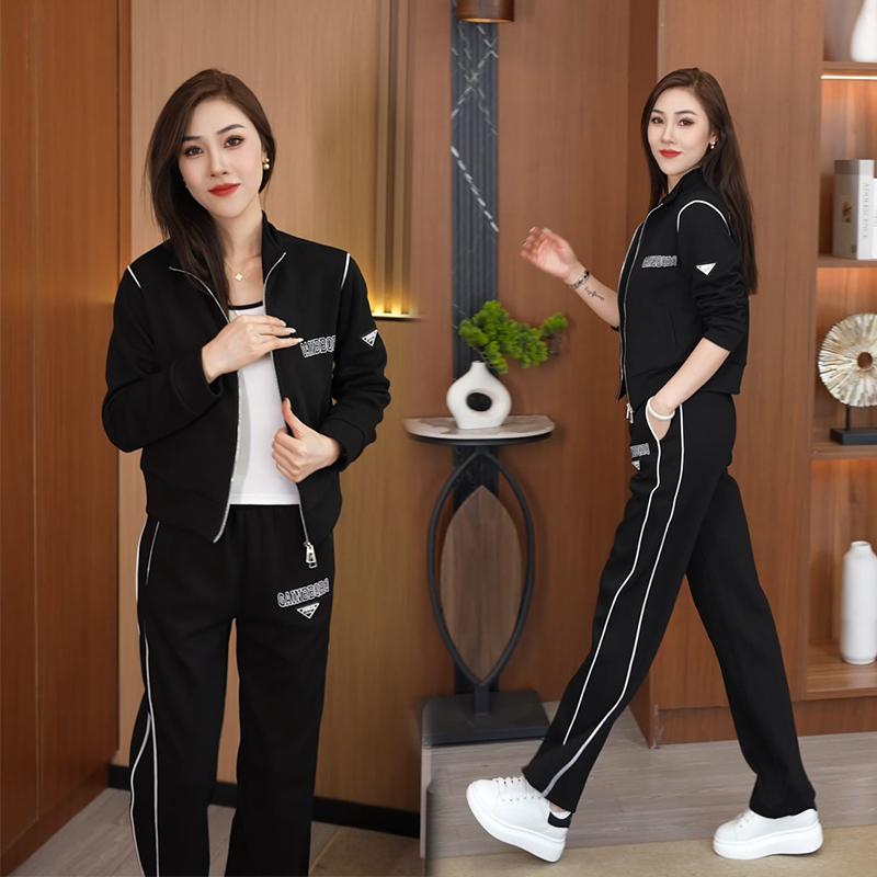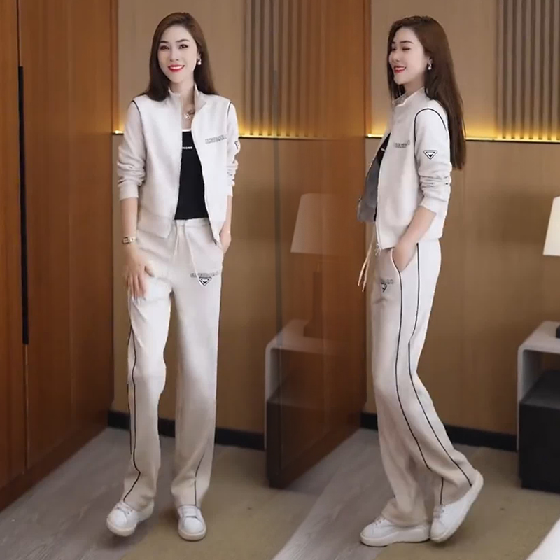 时尚休闲运动服套装女春季新款宽松洋气减龄短款外套阔腿裤两件套