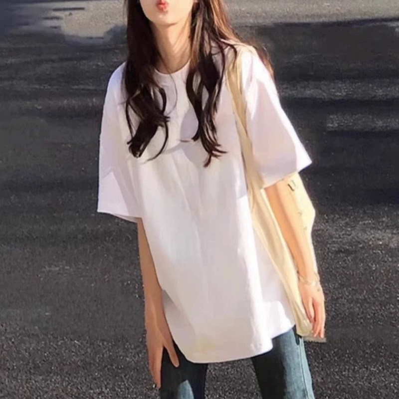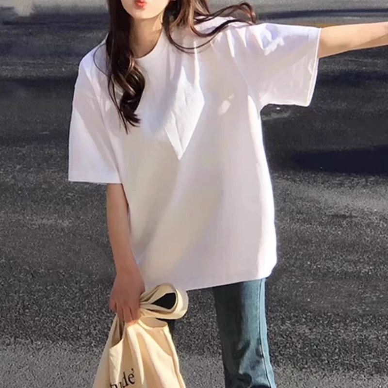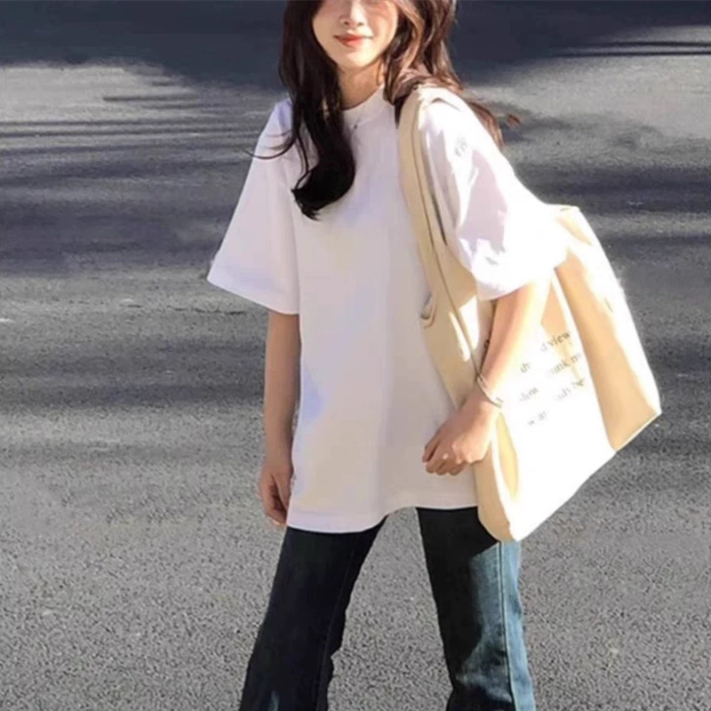 纯棉正肩白色短袖t恤女宽松上衣