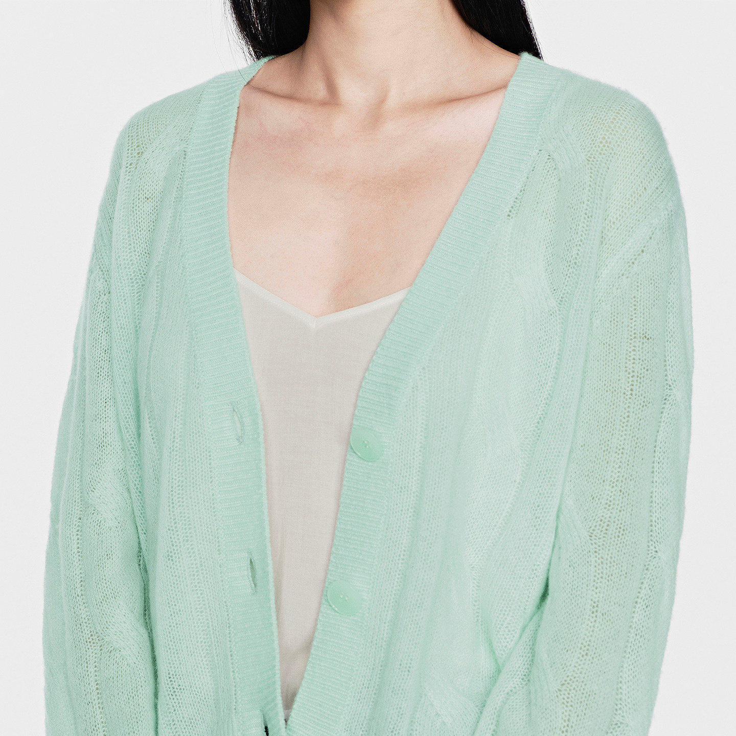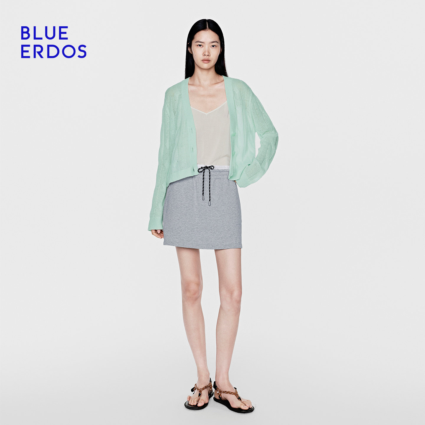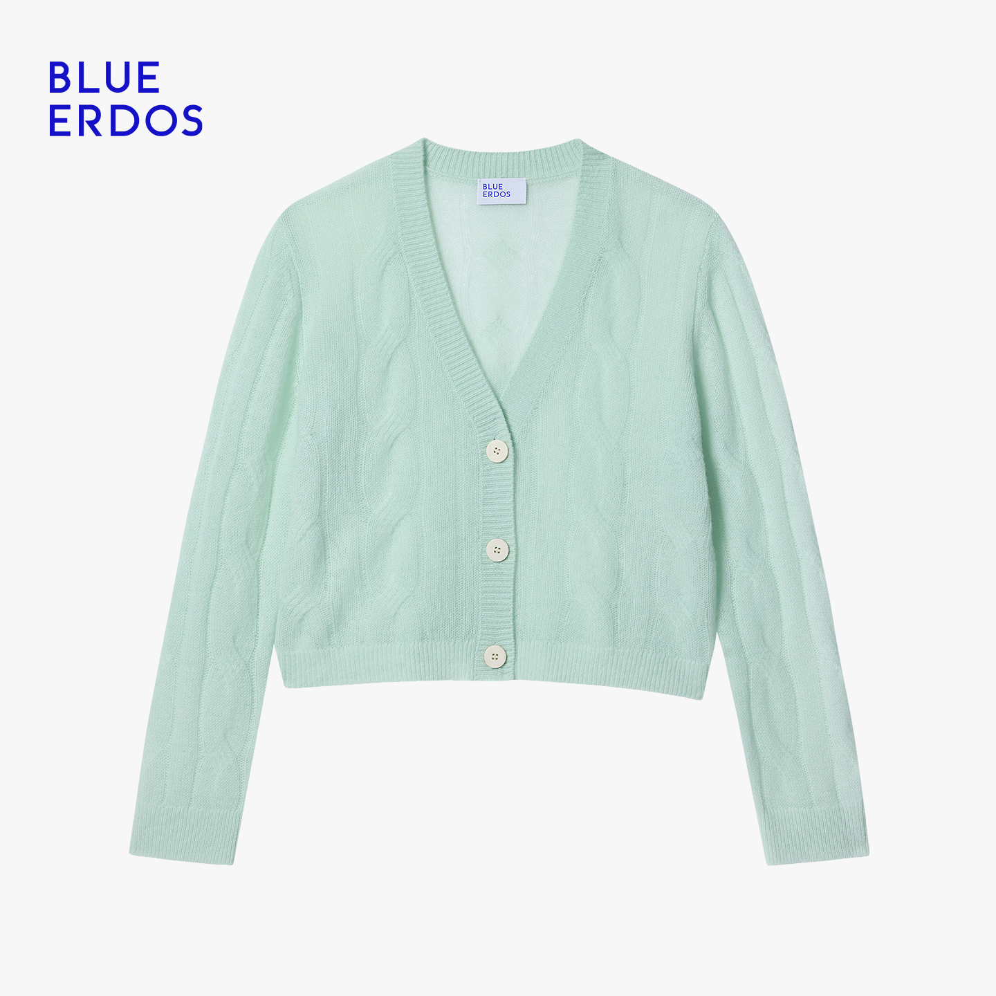 BLUE ERDOS26早春新品通勤百搭羊毛羊绒混纺V领短款绞花针织开衫