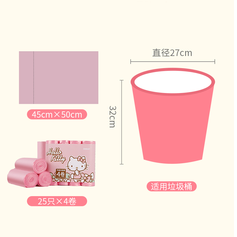 宜洁HelloKitty垃圾袋家用厨房加厚平口塑料袋中号学生宿舍清洁袋