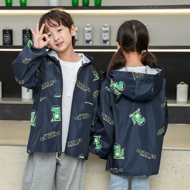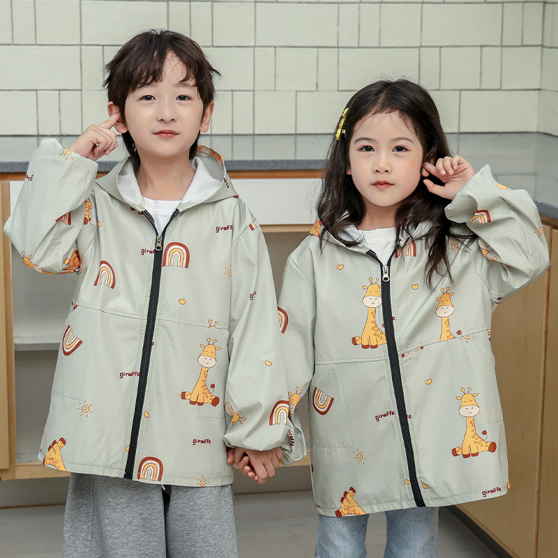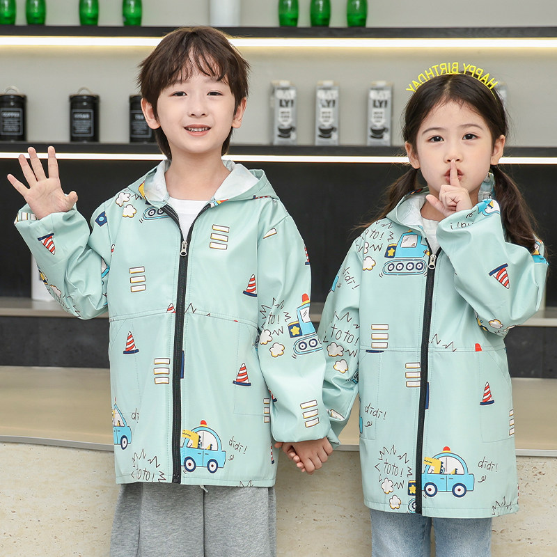 儿童罩衣薄款中大童宝宝围裙防水羽绒服薄款外套护衣长袖幼儿园
