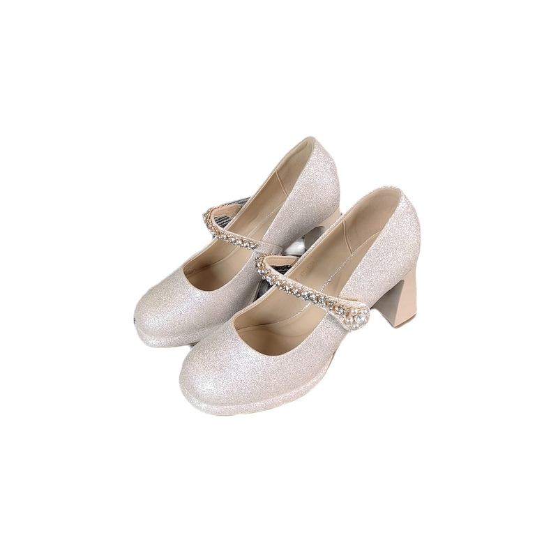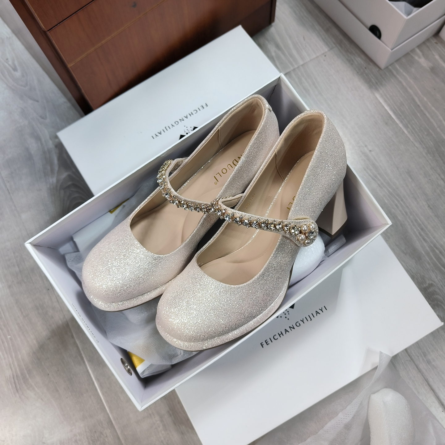 心朵莉2025新款粗跟单鞋女复古法式玛丽珍鞋金色新娘婚鞋高跟女鞋