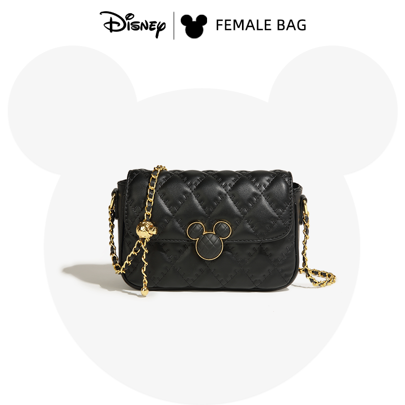 迪士尼正品米奇菱格链条包单肩斜挎包小方包包女款2025年七夕礼物