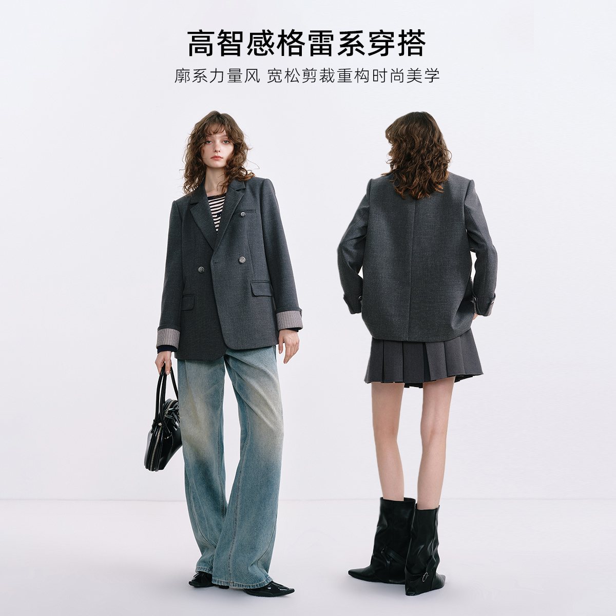 KBNE灰色休闲西装外套女2025秋季新款长袖薄款西服小个子上衣气质