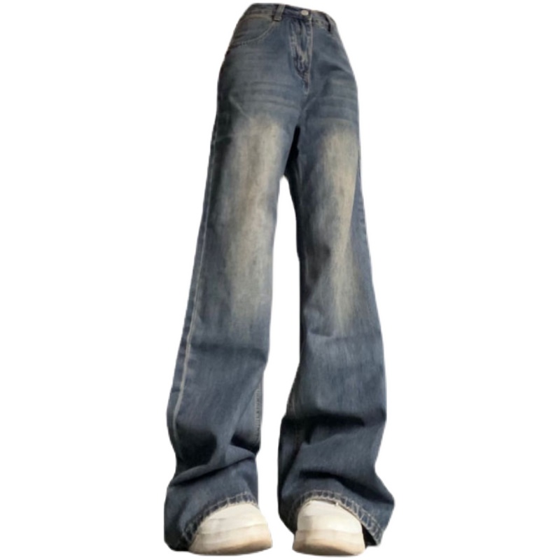 大码胖mm微喇叭裤子新款秋冬水洗复古宽松直筒阔腿牛仔裤女ins潮
