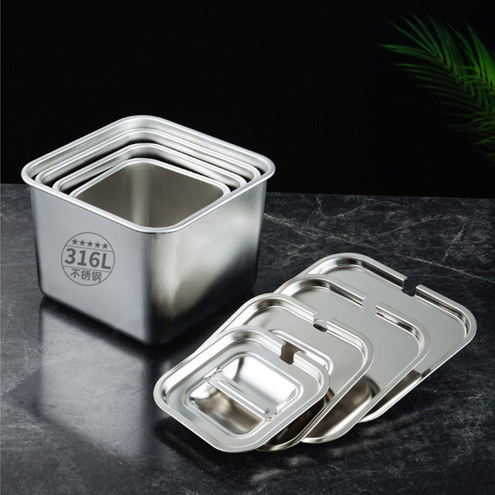 316不锈钢味盅带盖方形调料罐调料盒调味盒后厨商用佐料盒配料盒