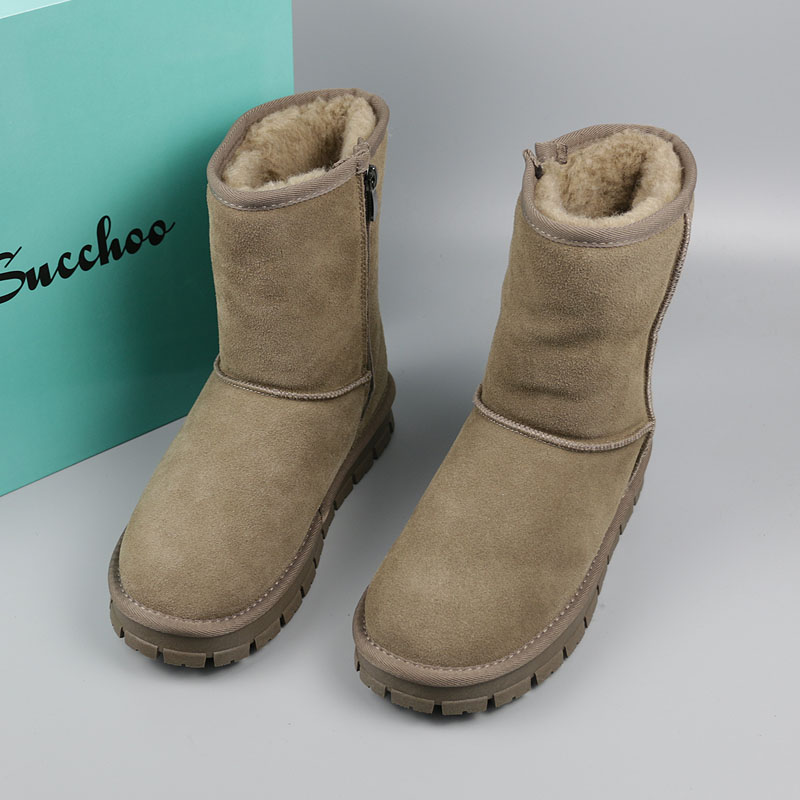 外贸俄罗斯订单真皮羊毛混纺加绒保暖中筒雪地靴靴子高帮棉鞋女鞋