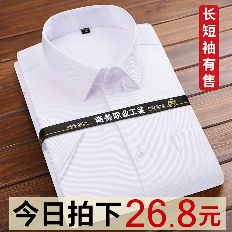 男士长袖白衬衫商务职业正装春季西装休闲内搭短袖衬衣蓝色工装寸