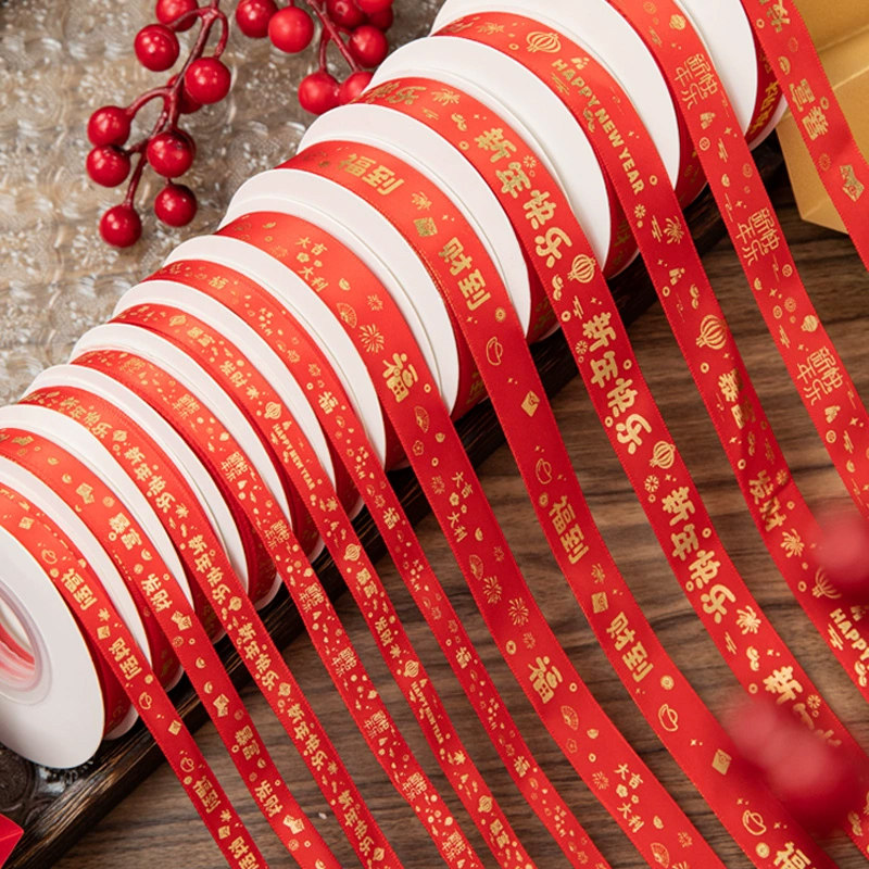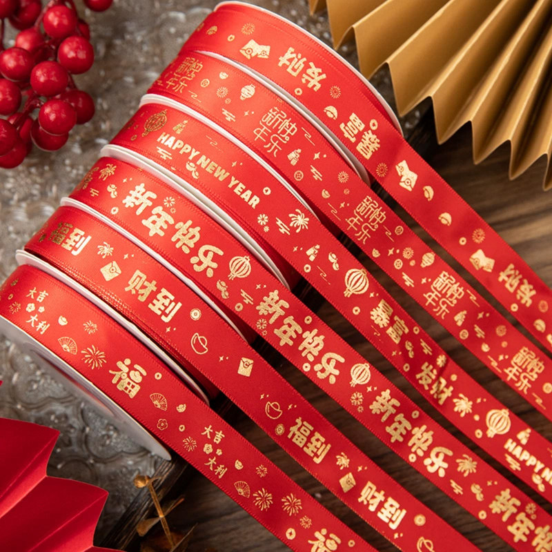 2026新年快乐蛋糕装饰丝带礼品礼盒缎带鲜花花束包装彩带甜品绑带