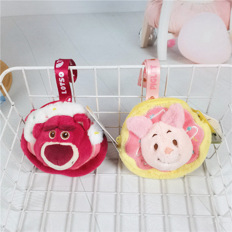 迪士尼正版草莓维尼零钱包小号公仔挂件熊饼干小包皮杰猪玩偶挂饰