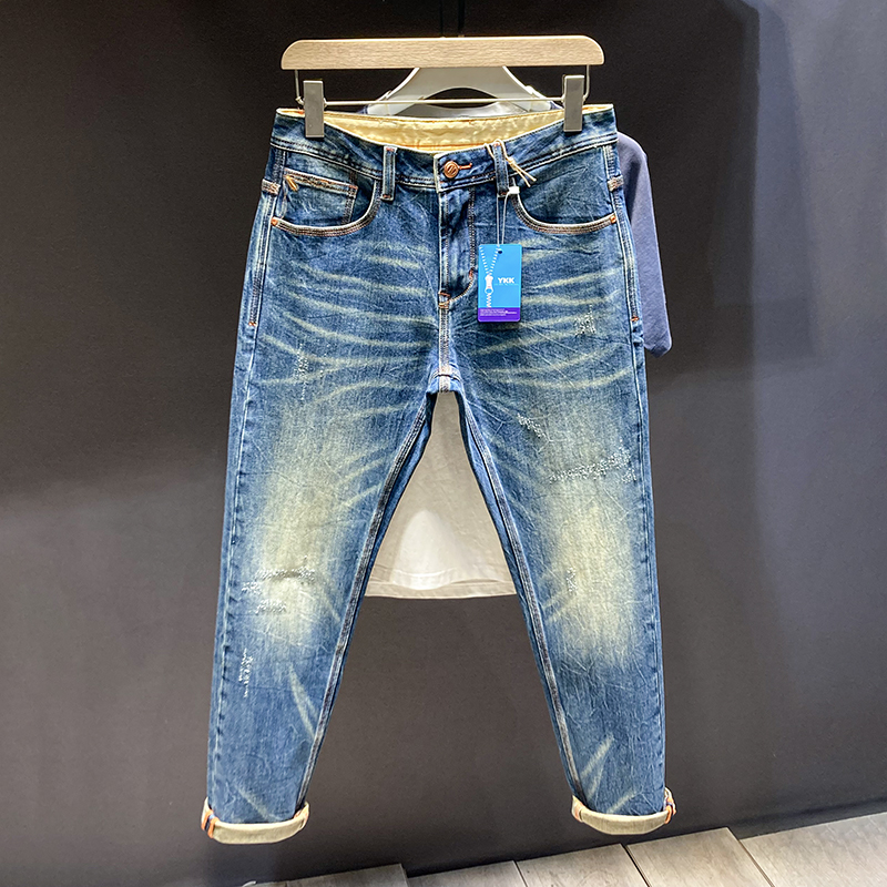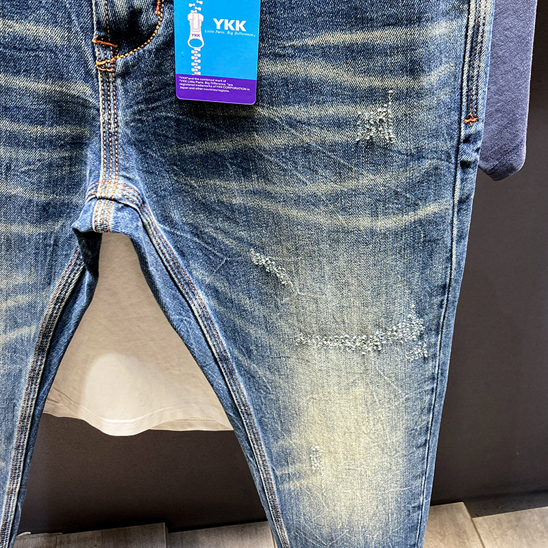 潮牌牛仔裤男款弹力修身小脚长裤蓝色休闲2025年春秋新款男士裤子
