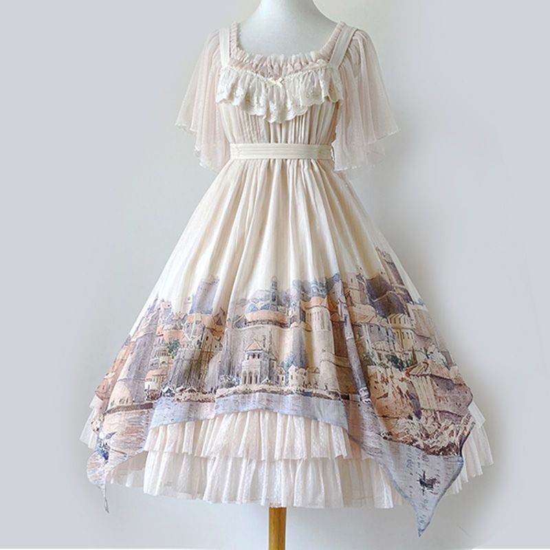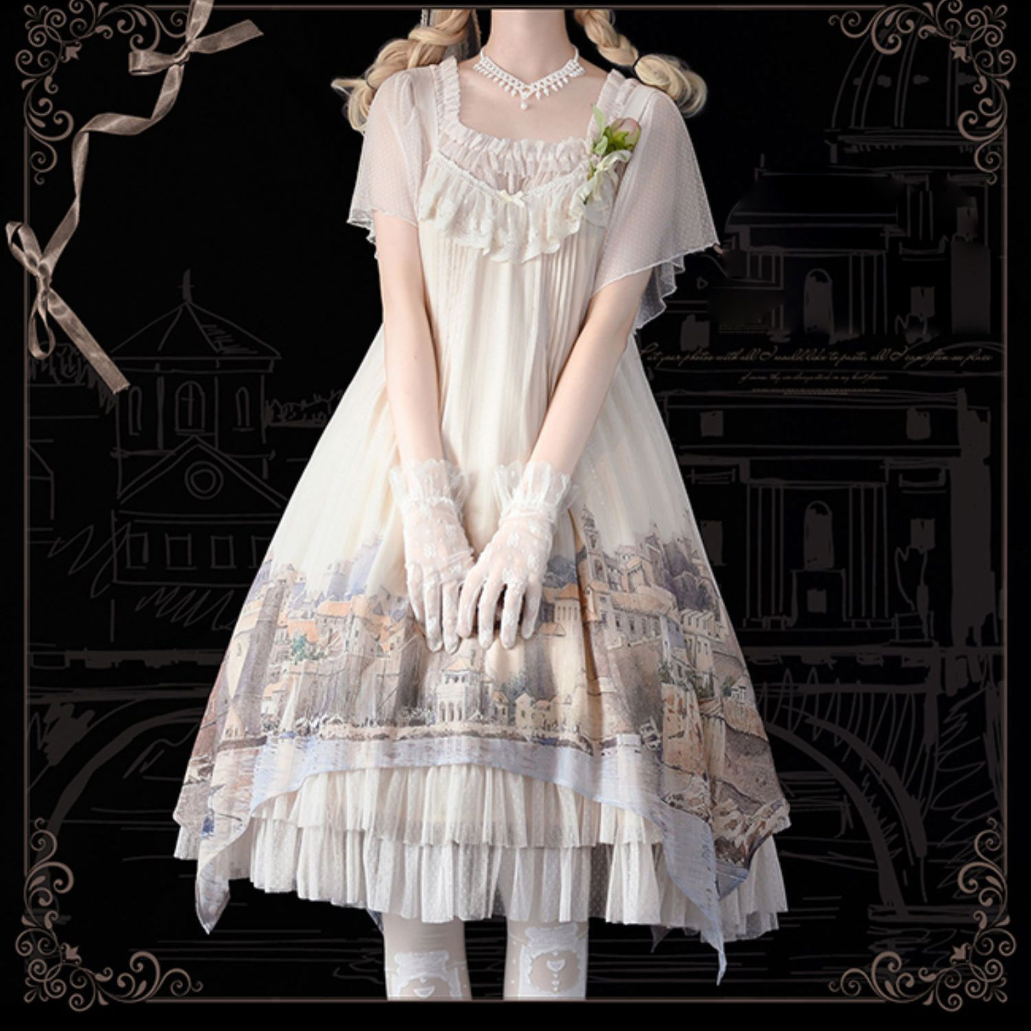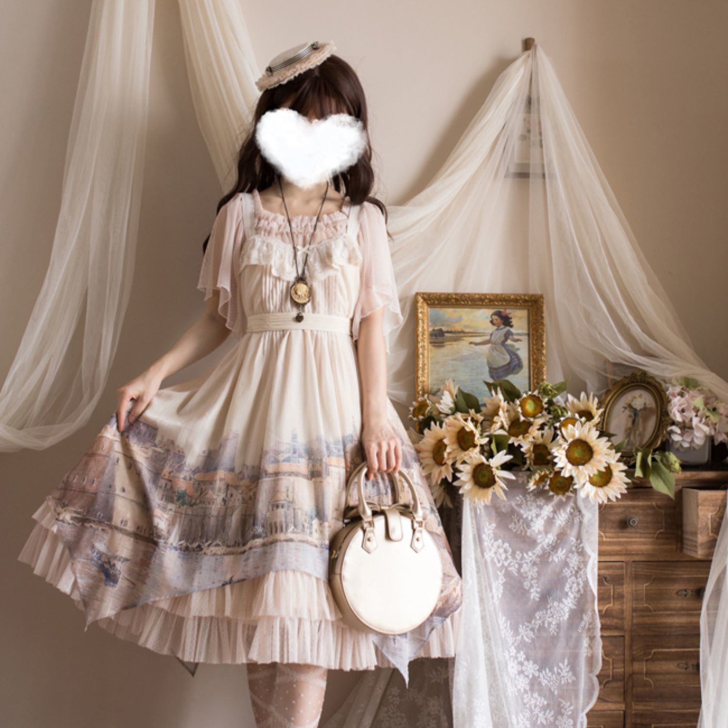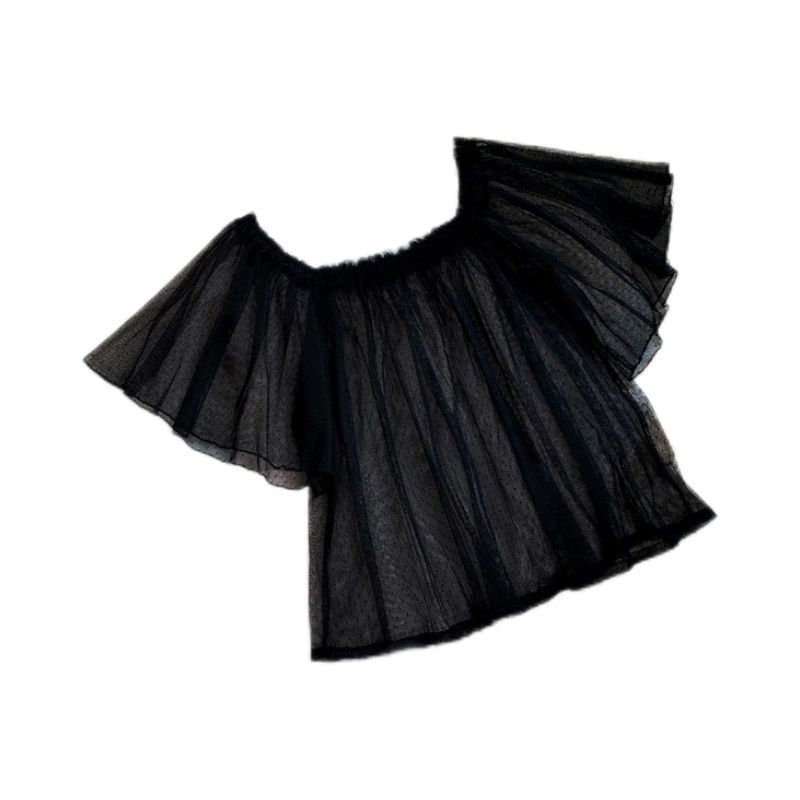 纯色飞袖点点纱网纱内搭上衣蕾丝短袖上衣女夏季轻薄洛丽塔衬衫