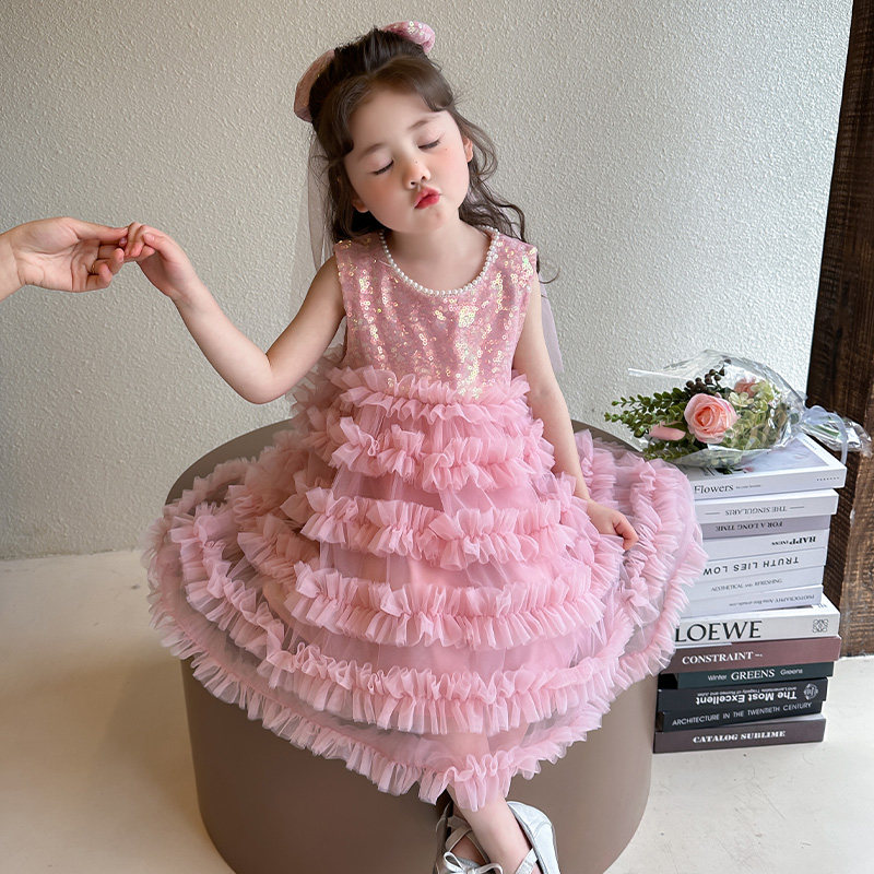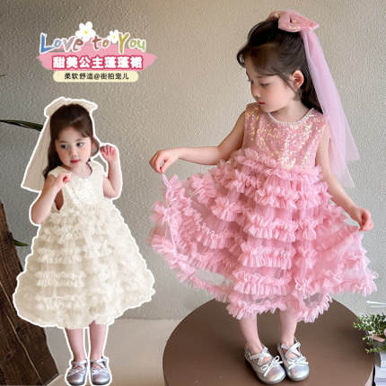 女童连衣裙2025新款夏洋气公主裙背心裙礼服蓬蓬蛋糕裙带头纱裙子