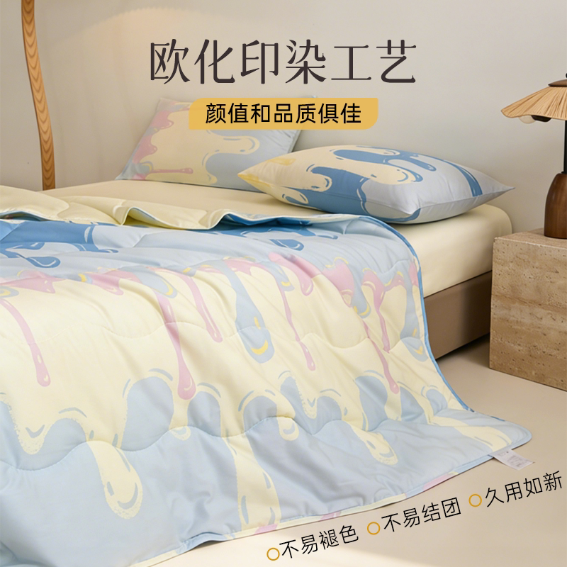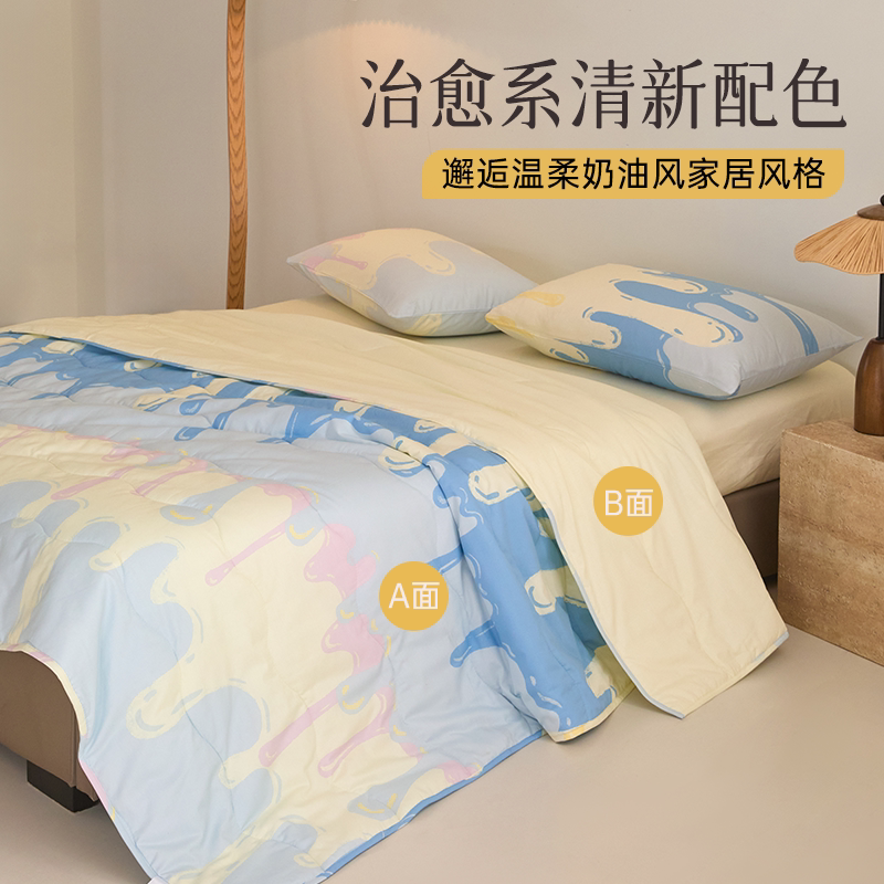 2026年春夏新款雅芳婷100%全棉可机洗夏凉被法式几何纯棉空调被子