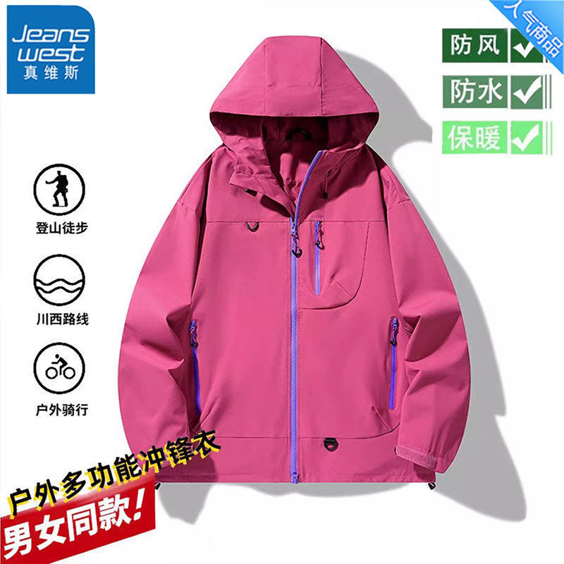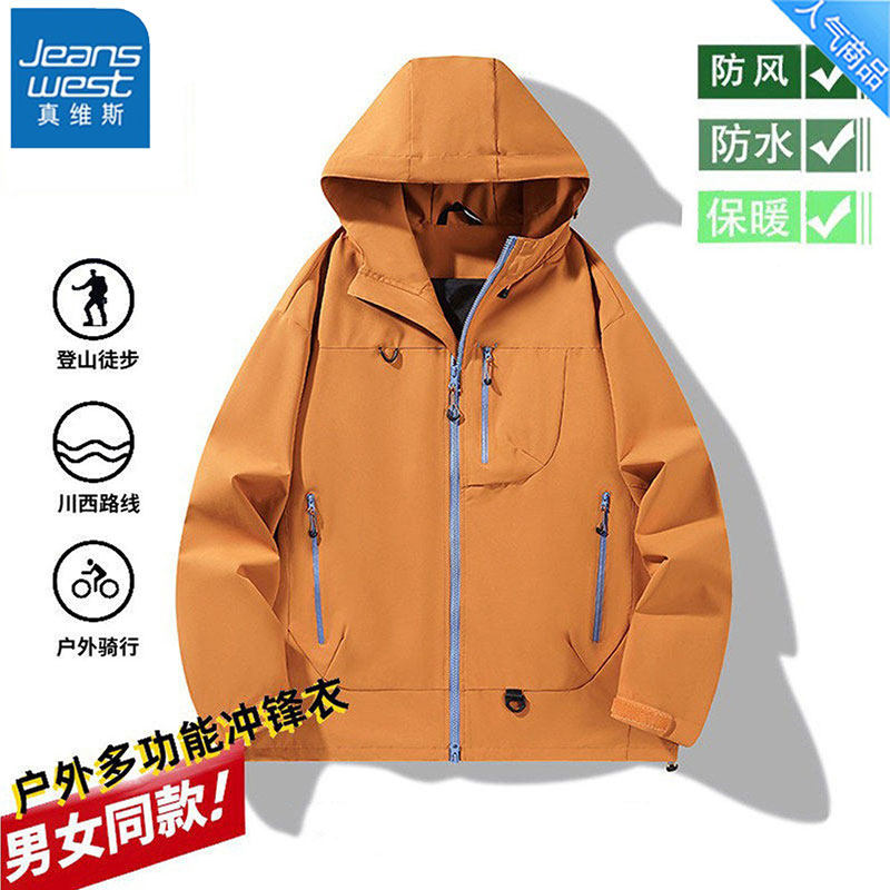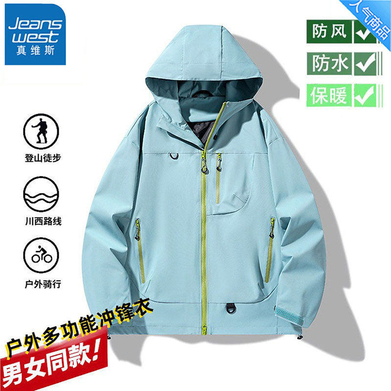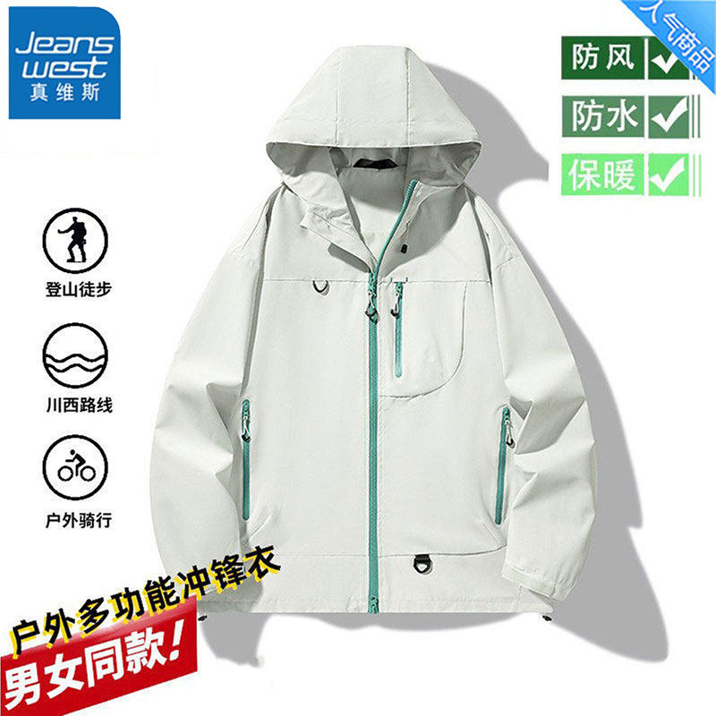 真维斯2025新款运动连帽冲锋衣春季防风防水工装夹克情侣登山服