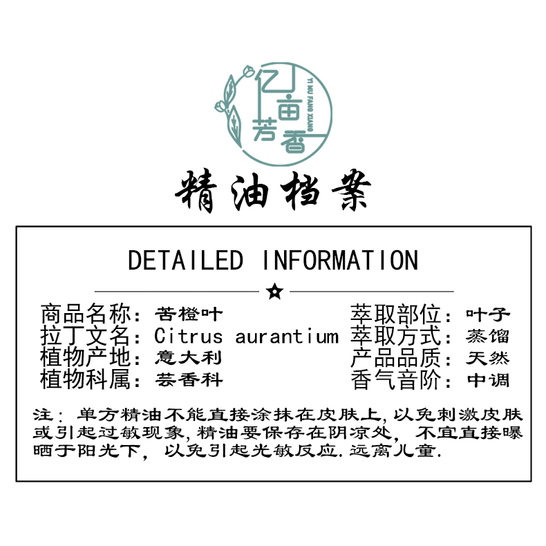 意大利苦橙叶单方精油芳疗按摩香薰放松助眠酸回青橙安抚促进香水