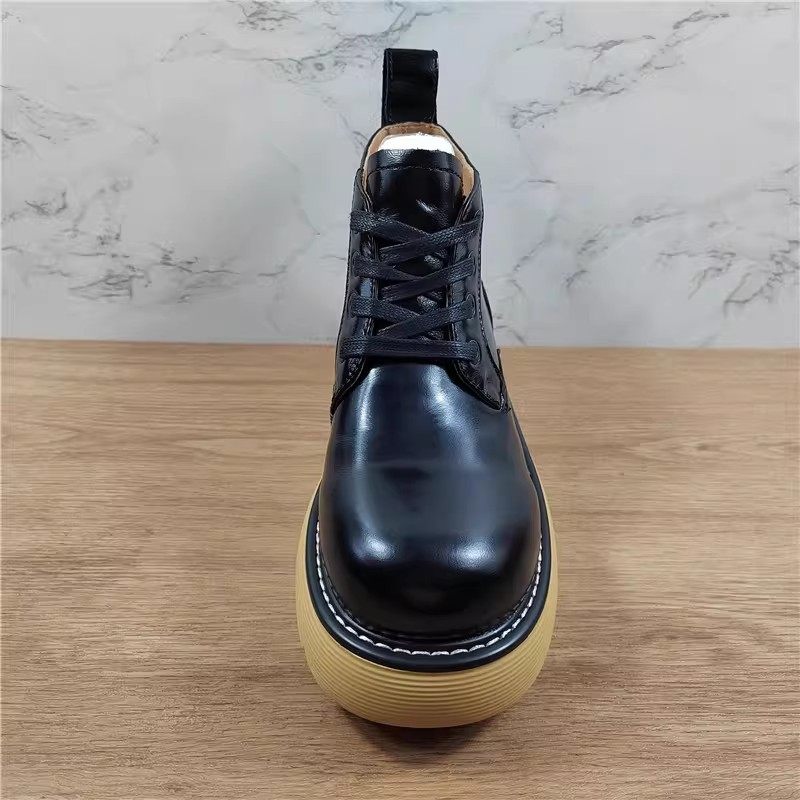 品牌女鞋真皮厚底系带短靴马丁靴