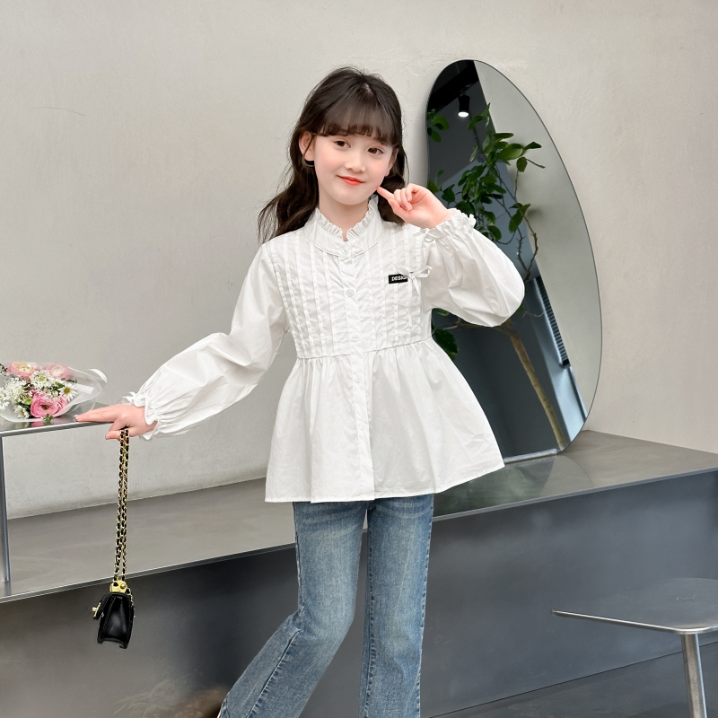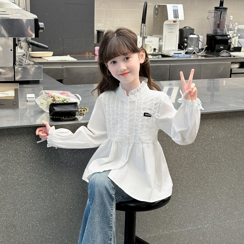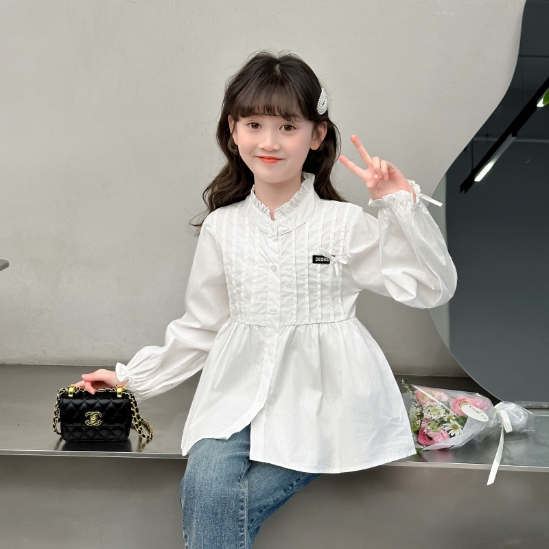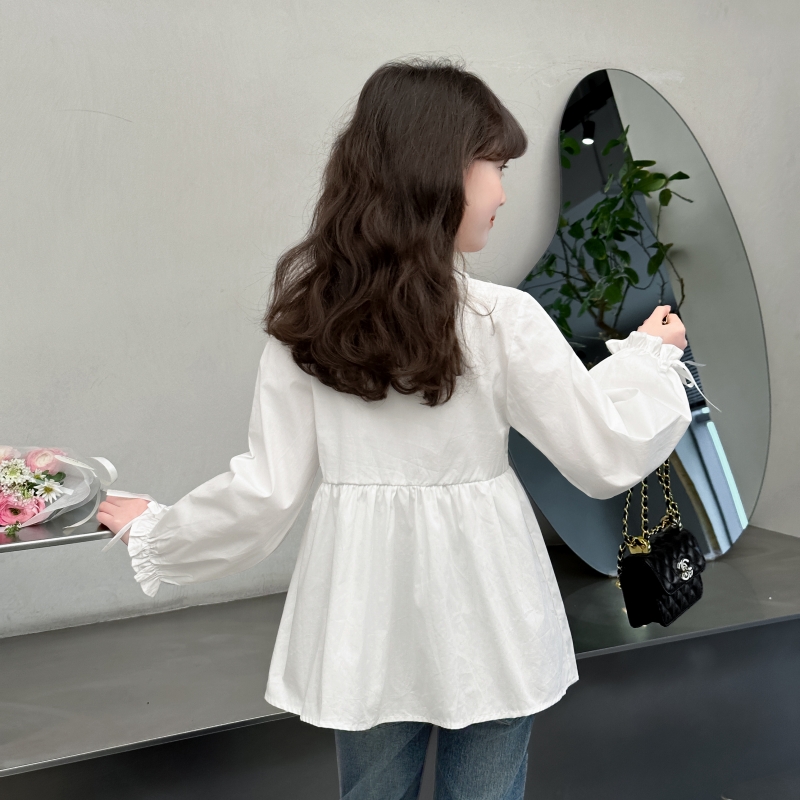 女童白色衬衫2025新款纯棉时尚洋气儿童法式长袖百搭女孩衬衣上衣