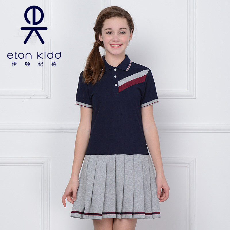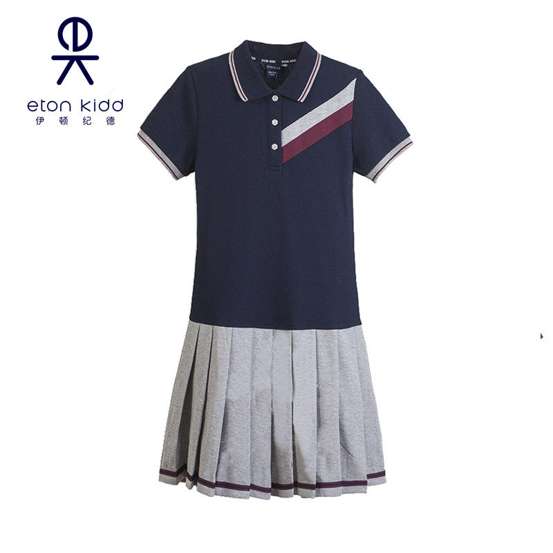 伊顿纪德校服女童学院风裙子中大童藏青色运动连衣裙 16L214促