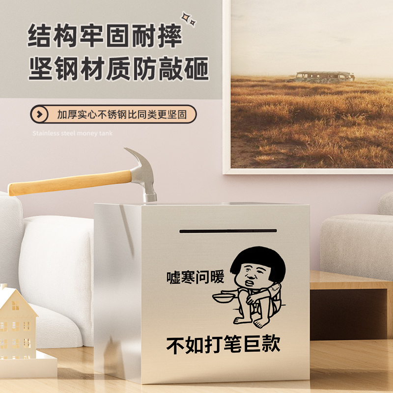 存钱罐2023年新款只进不出儿童男孩女孩储蓄钱箱网红不锈钢大人用