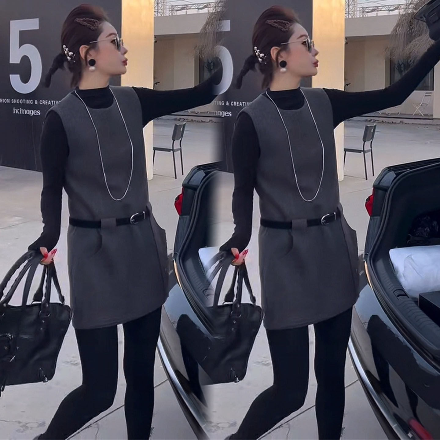 气质名媛小香风时尚套装女2026春季洋气轻奢无袖连衣裙+t恤两件套