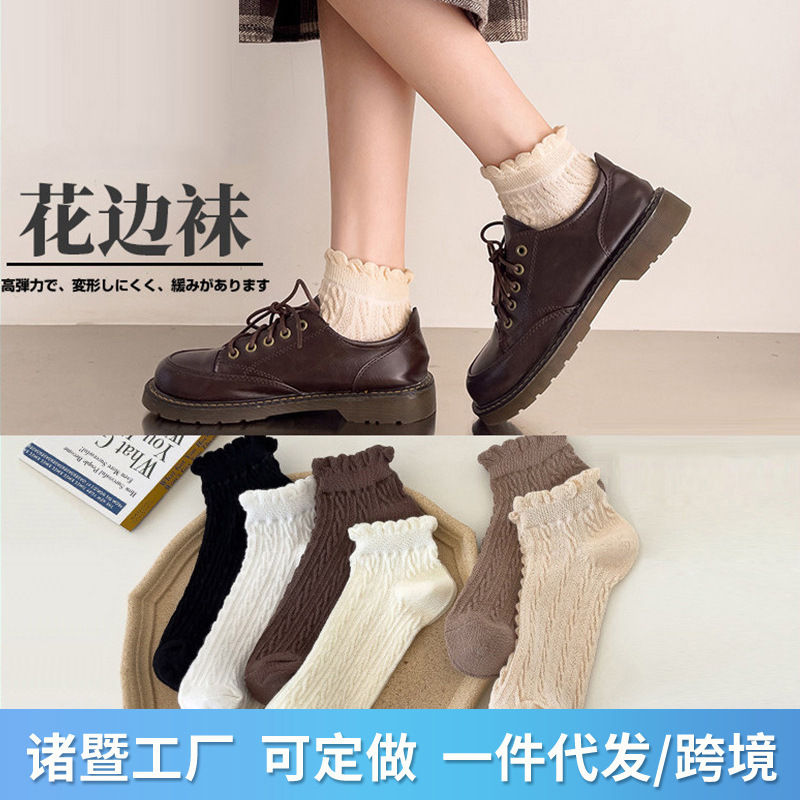 花边袜子女短袜秋季jk可爱日系浅口学生女袜低帮咖色ins潮春秋款