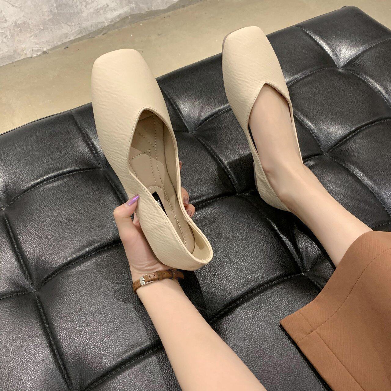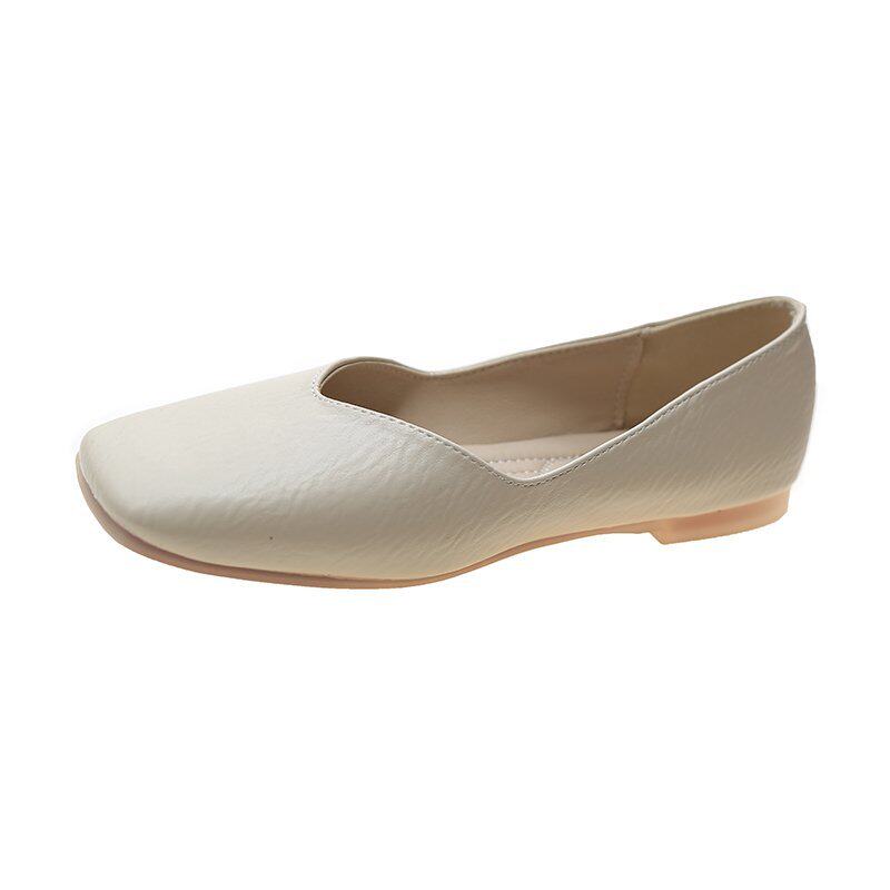 方头豆豆鞋女春夏浅口平底单鞋百搭瓢鞋黑色职业简约晚晚鞋奶奶鞋
